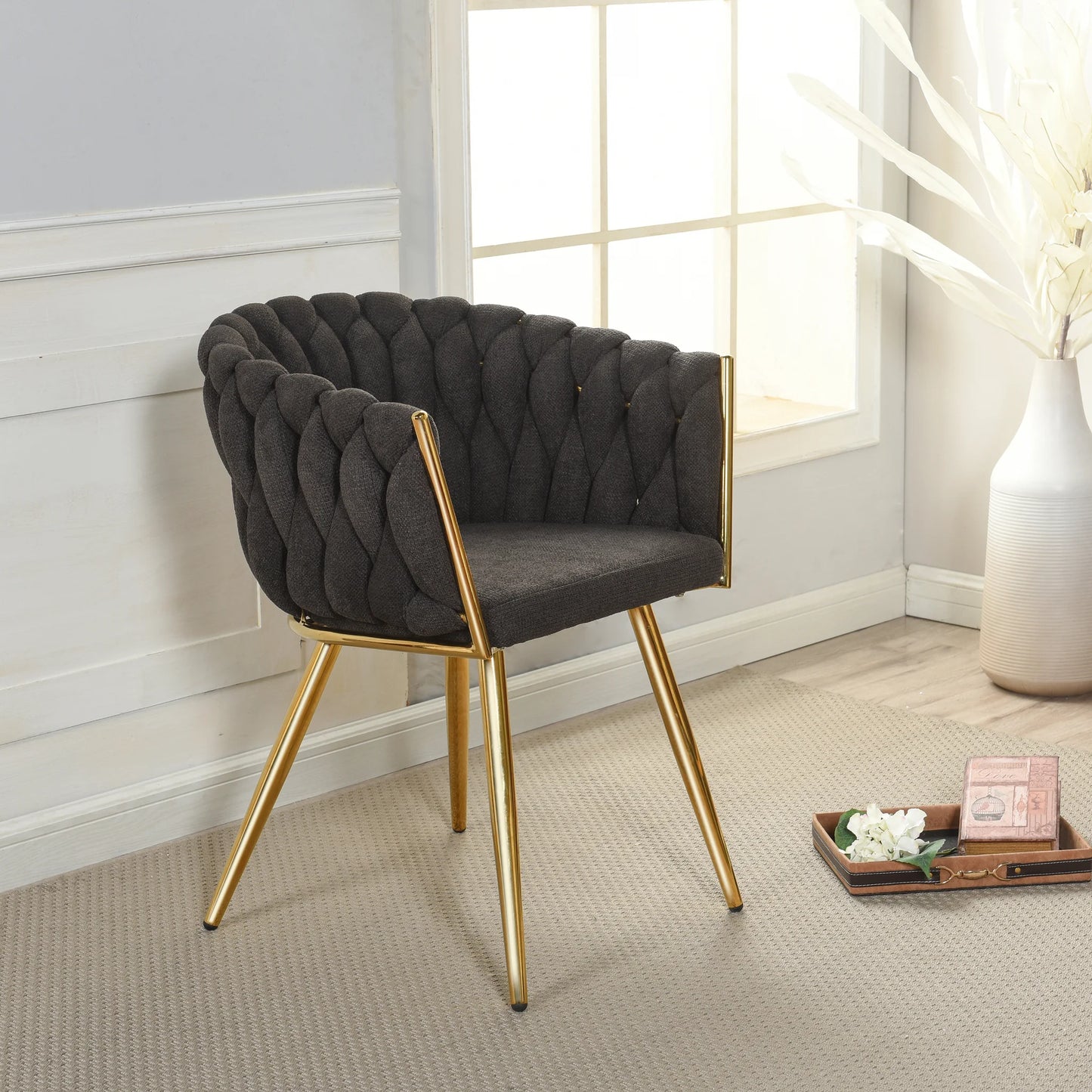 Austin Allen James Fabric Woven Chair with Polished Gold Legs Stylish and Contemporary Seating Solution