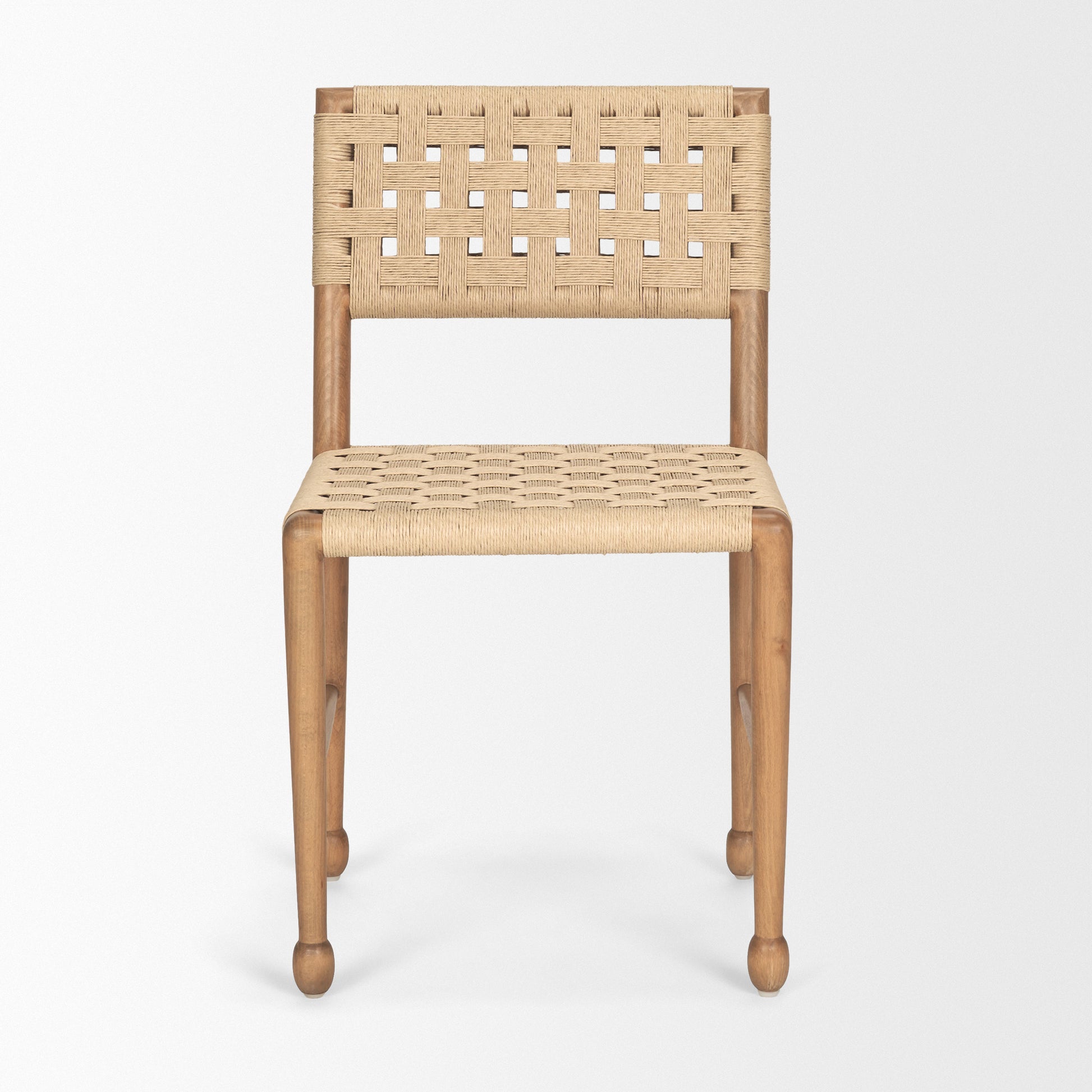 Brinley Woven Paper Rope w Brown Wood Frame Dining Chair Set of 2