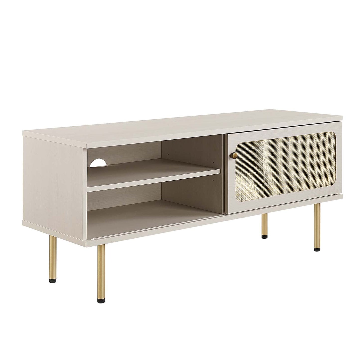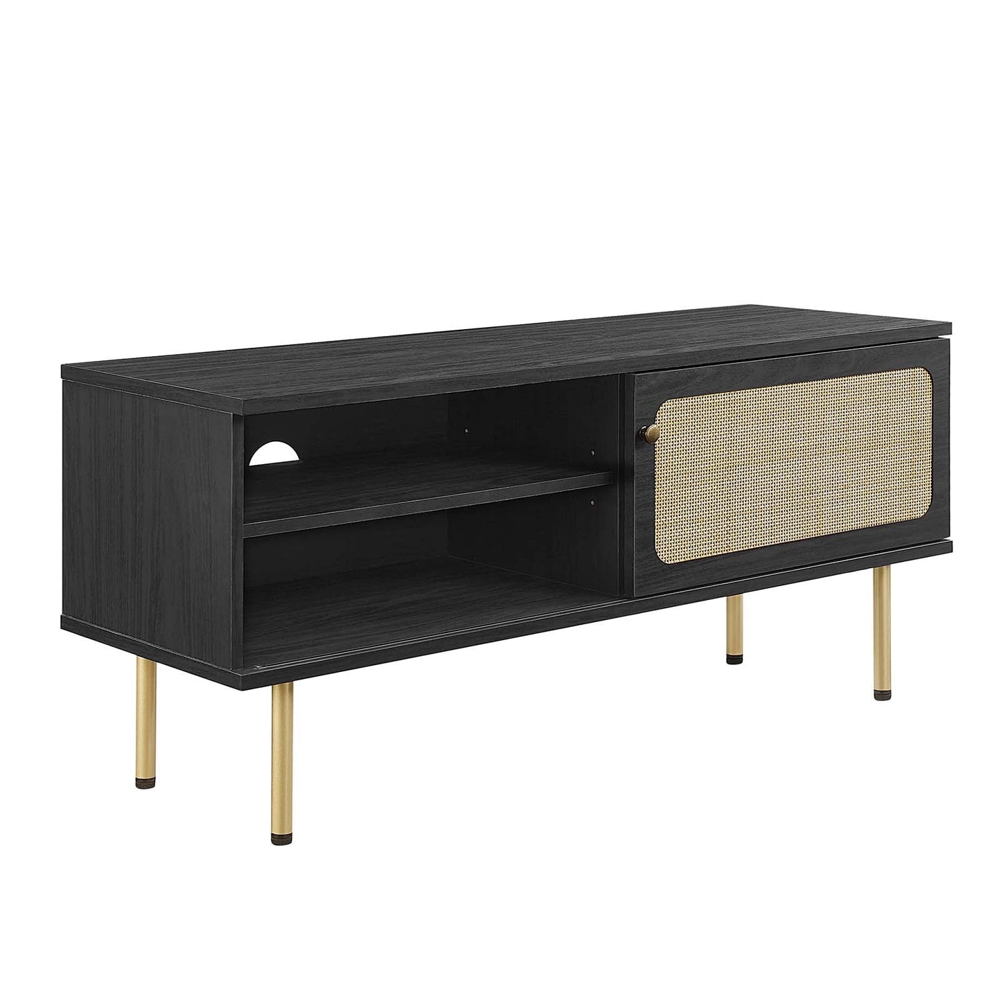 Cambria 47" Modern TV Stand – Rattan Weave, Cable Management & Chic Metal Legs for Versatile Spaces