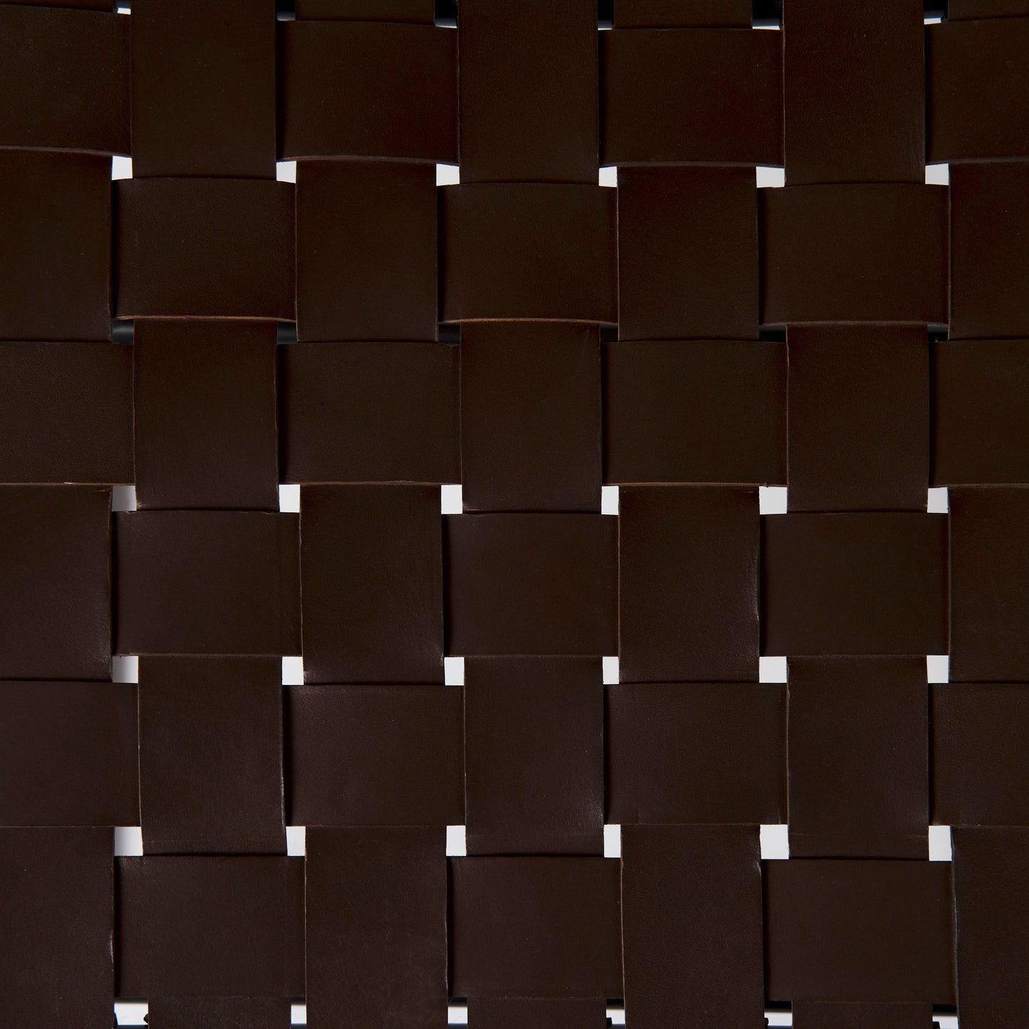 Clarissa Brown Leather Woven Seat with Black Metal Frame Stool