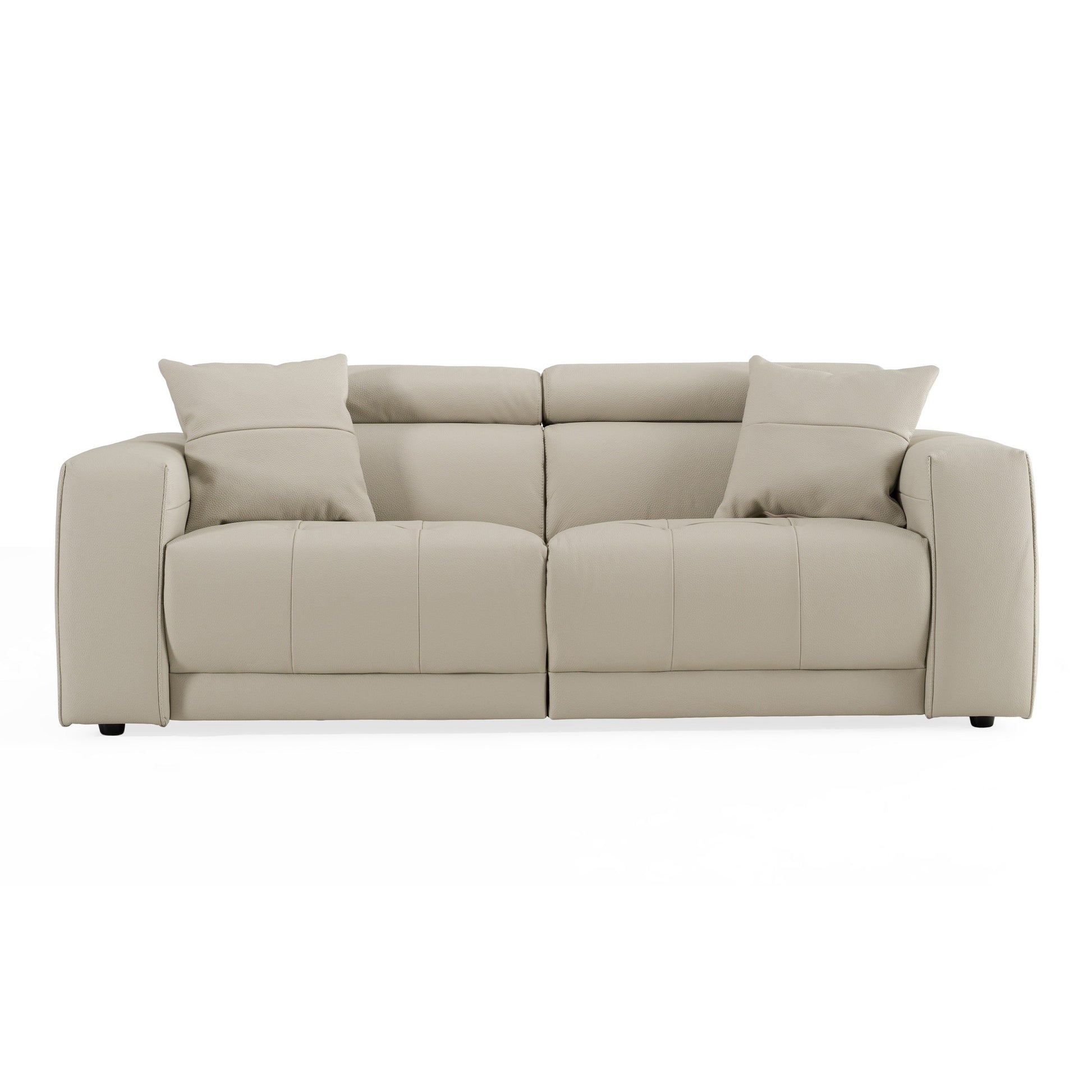 Dalton Modern Italian Light Grey Leather 3 Seat Sofa 2 Recliners