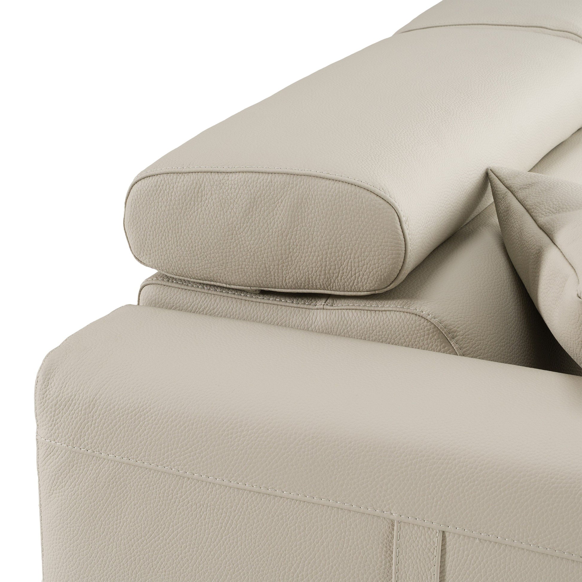 The Dalton Sofa features a threeβseat layout upholstered in light grey leather, offering a consistent and smooth surface suitable for living spaces. Two of the seats include manual or powerβassisted reclining functions, depending on the model specifications, providing adjustable seating positions. The frame is constructed with standard sofa support materials to maintain stability during everyday use. Its straightforward profile integrates easily into a range of interior arrangements without relying on decorative or subjective claims.