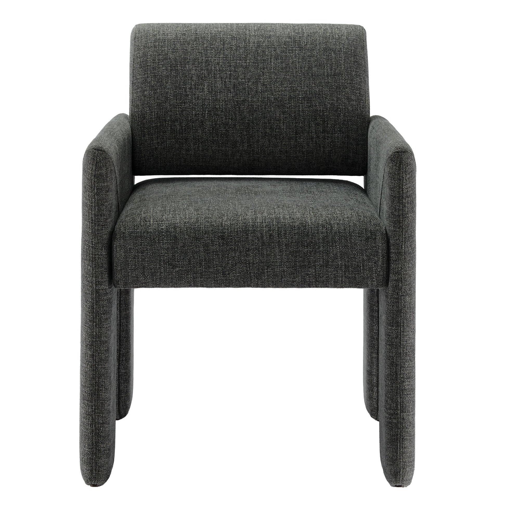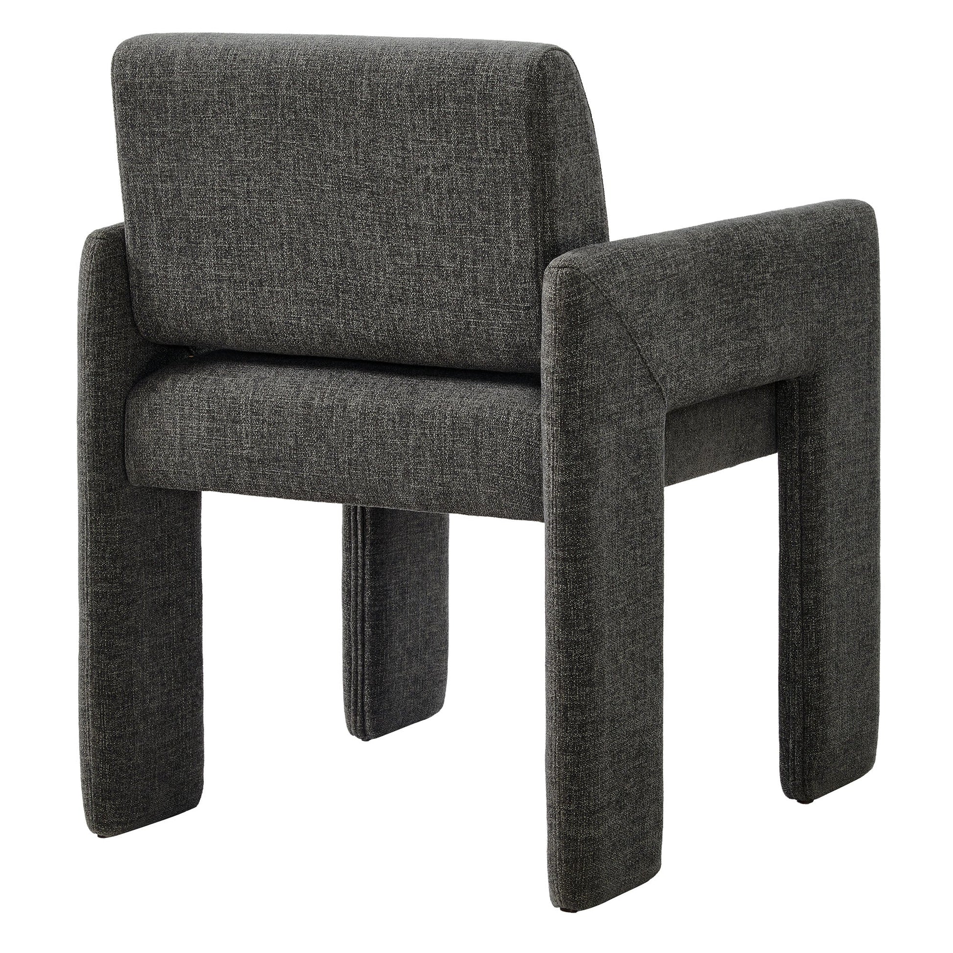 The Daven Upholstered Dining Chair features a modern silhouette suitable for dining rooms, offices, bedrooms, and living spaces. Upholstered in woven, heathered fabric, this chair includes dense foam cushioning and an internal webbed support system designed for everyday comfort.