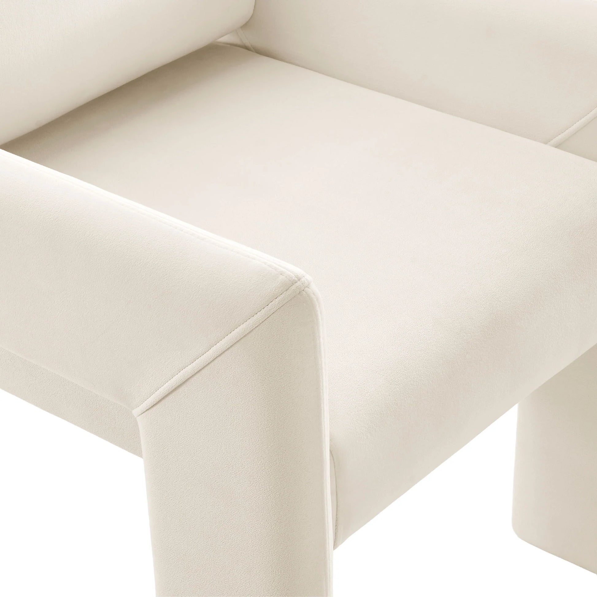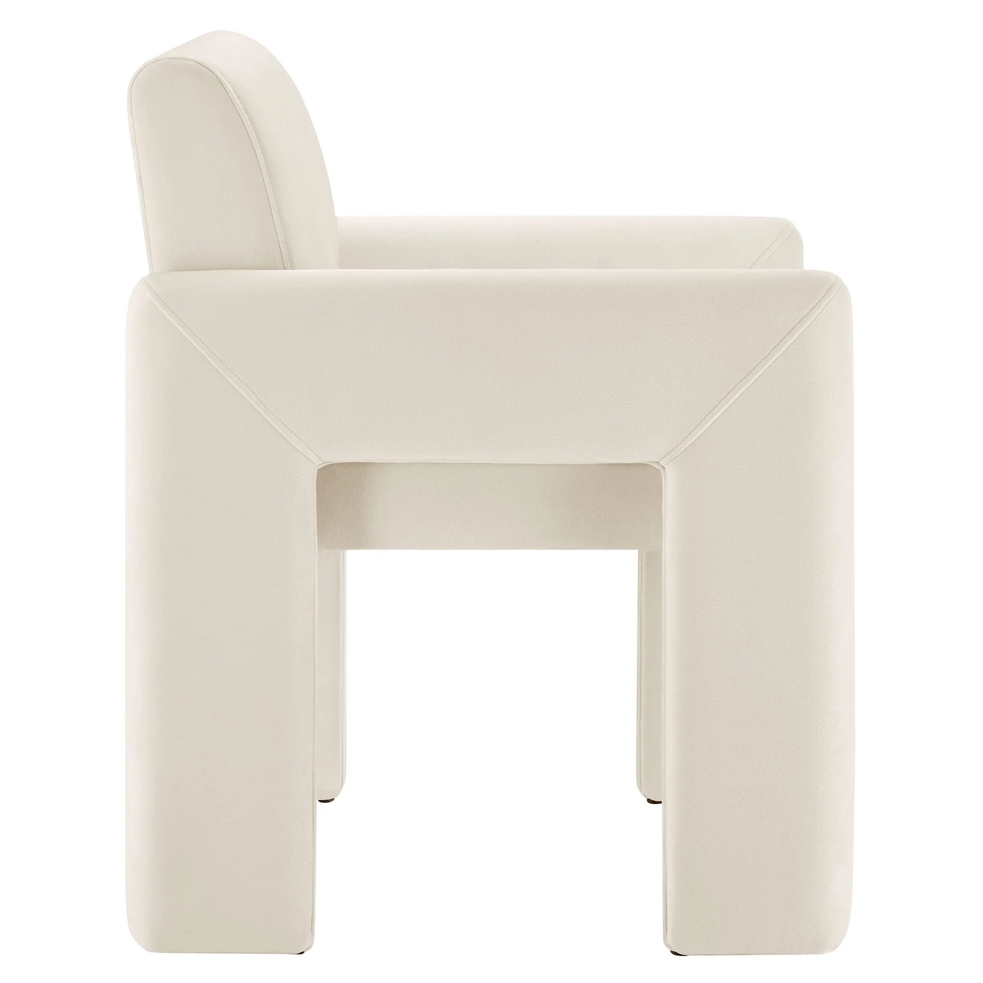 Its angled legs and low-profile base create a compact, architectural look that fits well in small or large spaces. Practical details include integrated floor glides to help protect surfaces and a secure bracket system that keeps the backrest firmly in place. The chair supports up to 500 lbs and requires assembly.