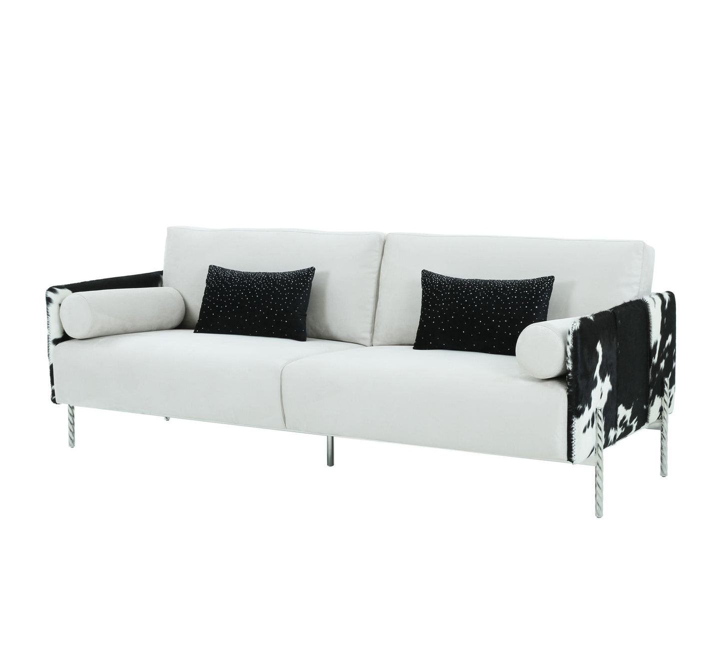 Distinctive Cow-hide Upholstery: Featuring genuine cowhide upholstery, this sofa offers a one-of-a-kind look with natural variations in color and pattern, ensuring that each piece is unique.