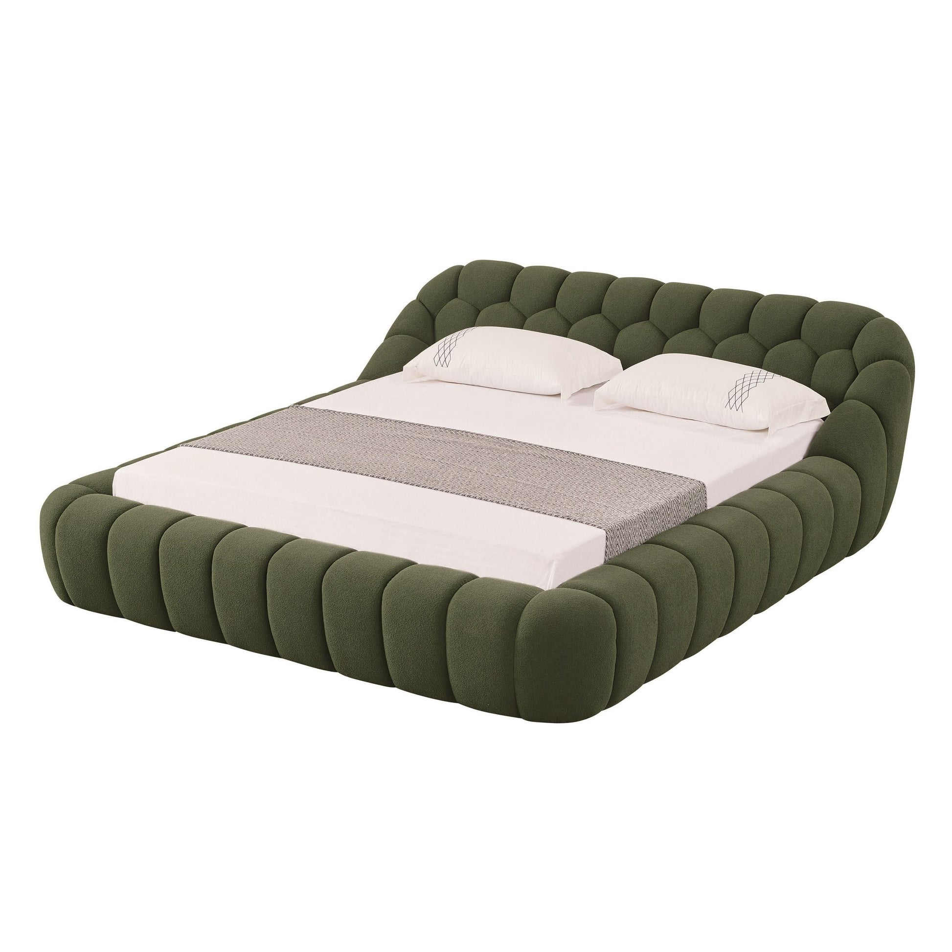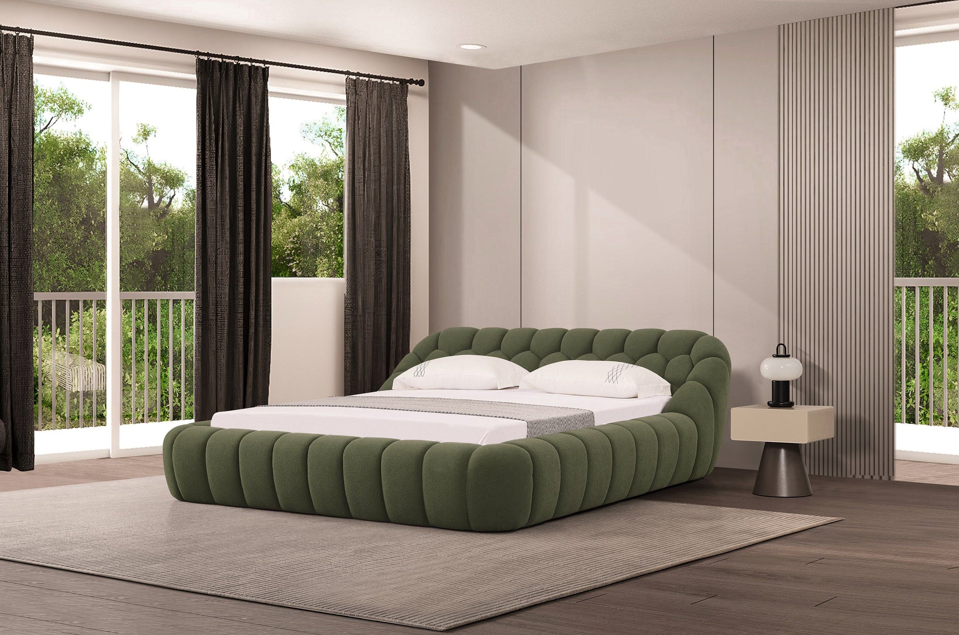 Divani Casa Yolonda Modern Bed β Upholstered Green Fabric Platform Frame