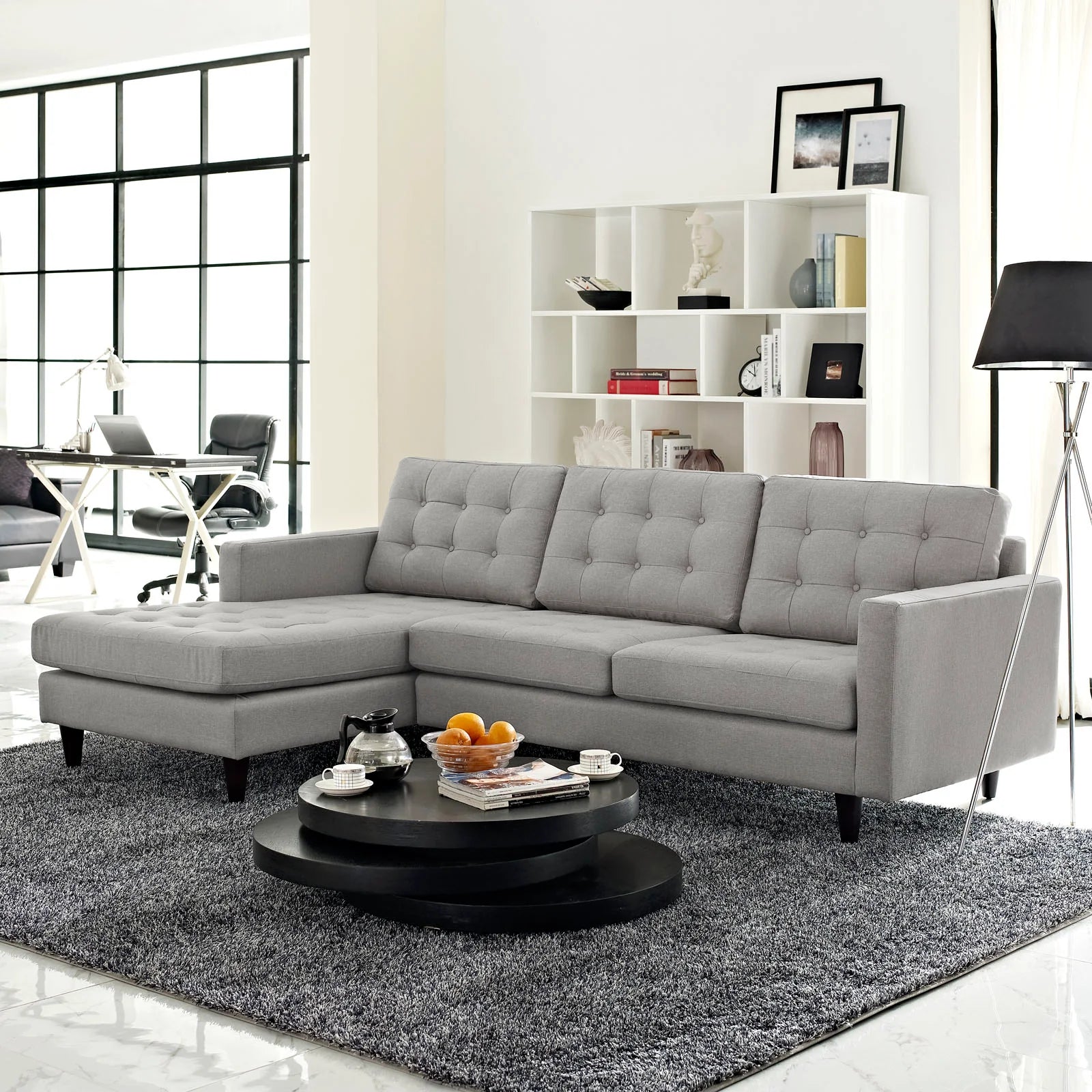 Bring timeless style and modern comfort to your home with the Empress Left-Facing Upholstered Fabric Sectional Sofa. Inspired by classic mid-century design, this sectional features clean lines, tufted detailing, and a sleek silhouette that effortlessly enhances any contemporary or retro-inspired living space. With its generous seating and plush cushions, it’s perfect for lounging, entertaining, or everyday relaxation.