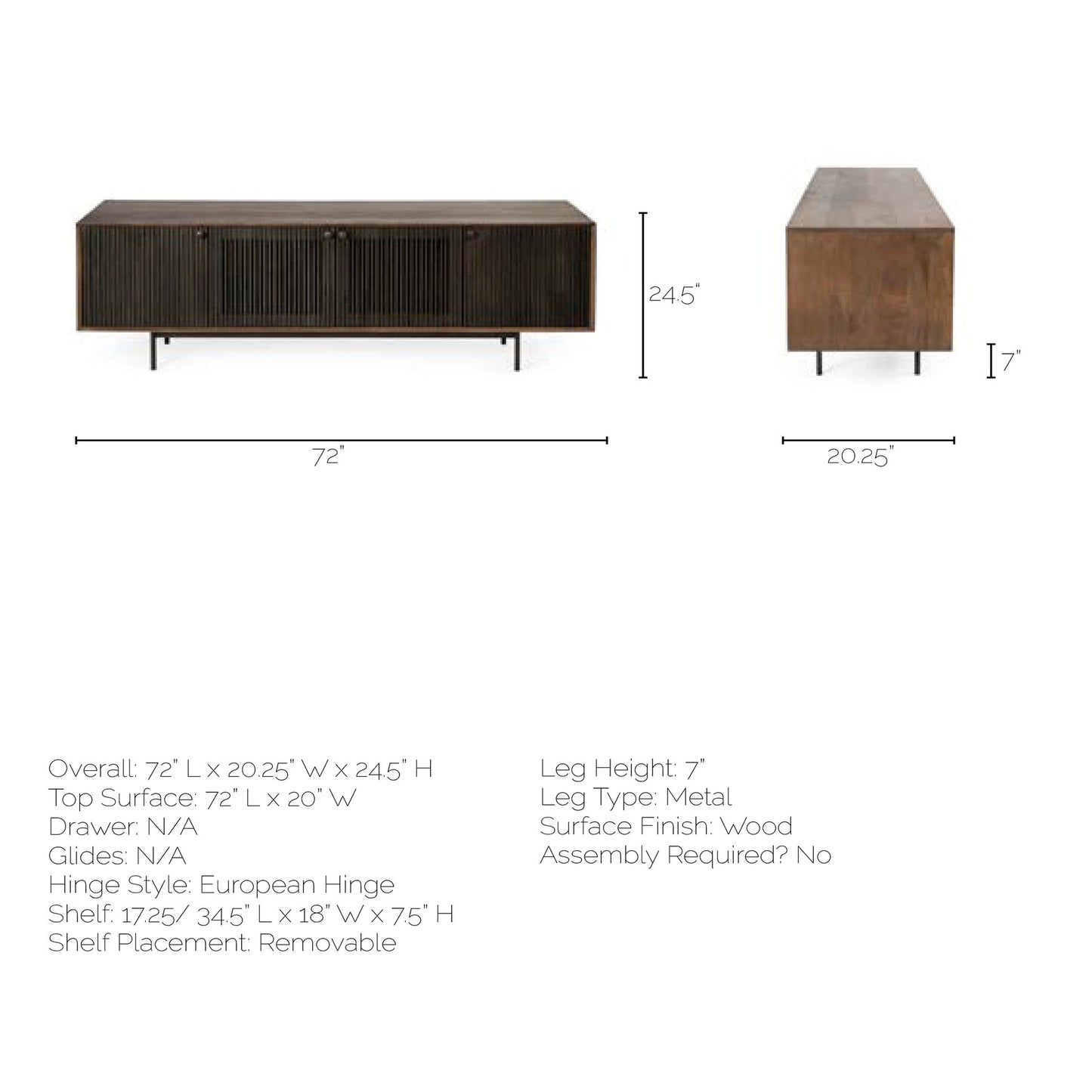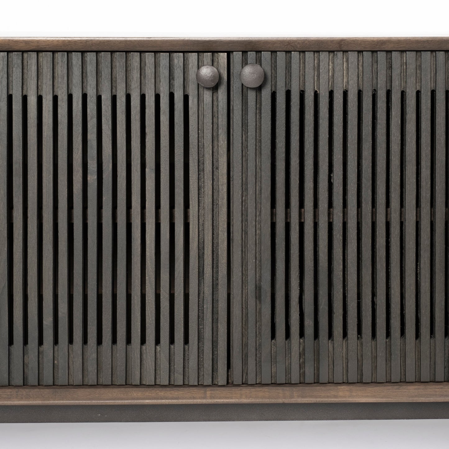 Grace I Two-Toned Brown Solid Wood TV Stand Media Console with Slatted Doors - Stylish Design for Modern Living Rooms and Entertainment Spaces