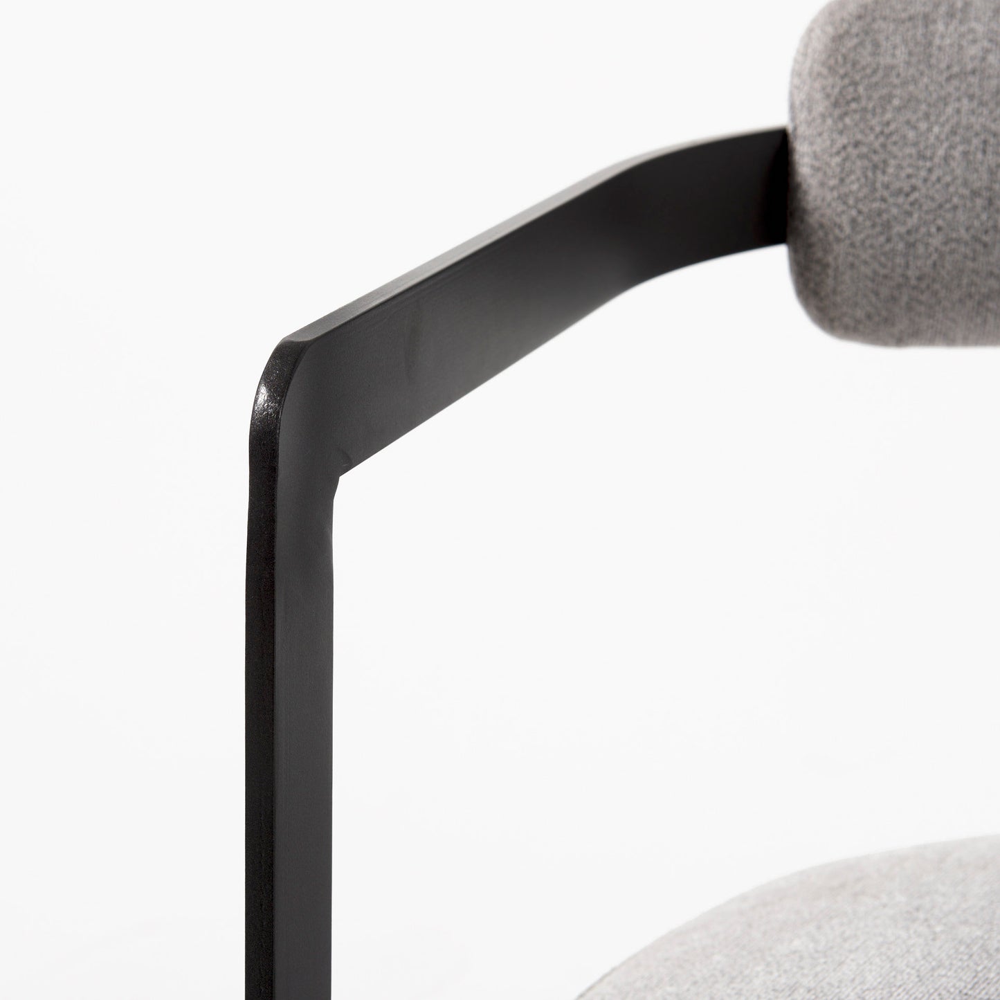 The Hollyfield II Dining Chair offers a sleek and modern look with a touch of industrial charm. Featuring a gray fabric seat, this chair provides a soft, neutral aesthetic that blends effortlessly with various dining styles. The gray iron frame ensures durability while maintaining a minimalist, contemporary appeal. Its clean lines and balanced design make it a perfect fit for modern, industrial, and transitional spaces.