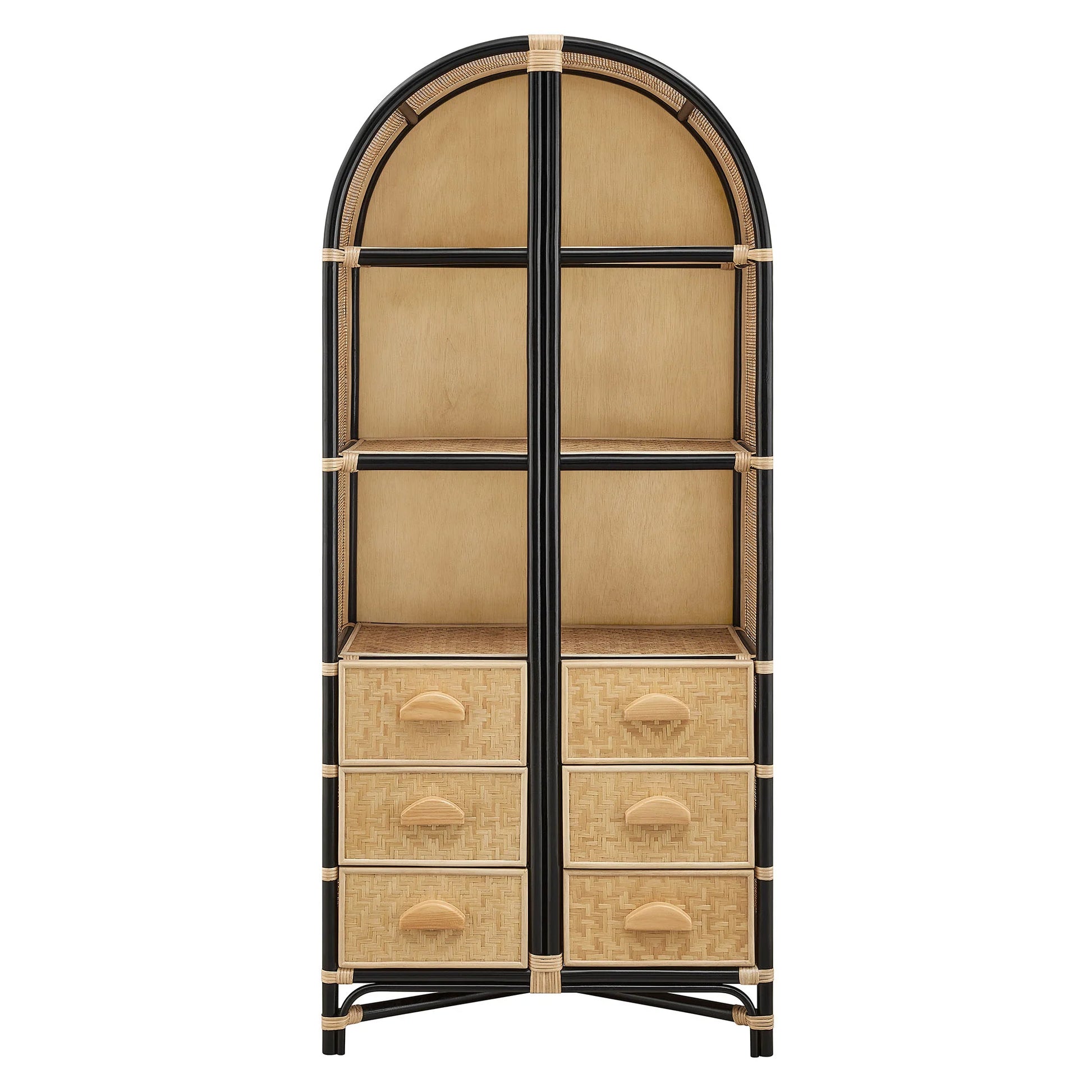 Jane 71βInch Tall Arched Natural Rattan Bookshelf in Natural