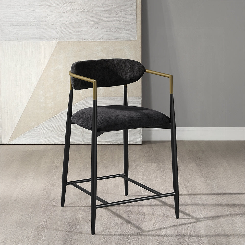The Jaramillo Black Counter Height Chair is a stylish and functional addition to your kitchen or bar area, combining contemporary design with comfort. Upholstered in sleek black fabric, this chair offers a sophisticated look while providing a comfortable seating experience. The sturdy frame ensures stability, making it perfect for everyday use or entertaining guests. With its modern aesthetic, the Jaramillo counter height chair is an ideal choice for enhancing your dining or social space.