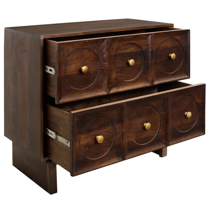 LAPORTE CHEST β Solid Mango Wood 2-Drawer Storage in Tobacco Brown Finish