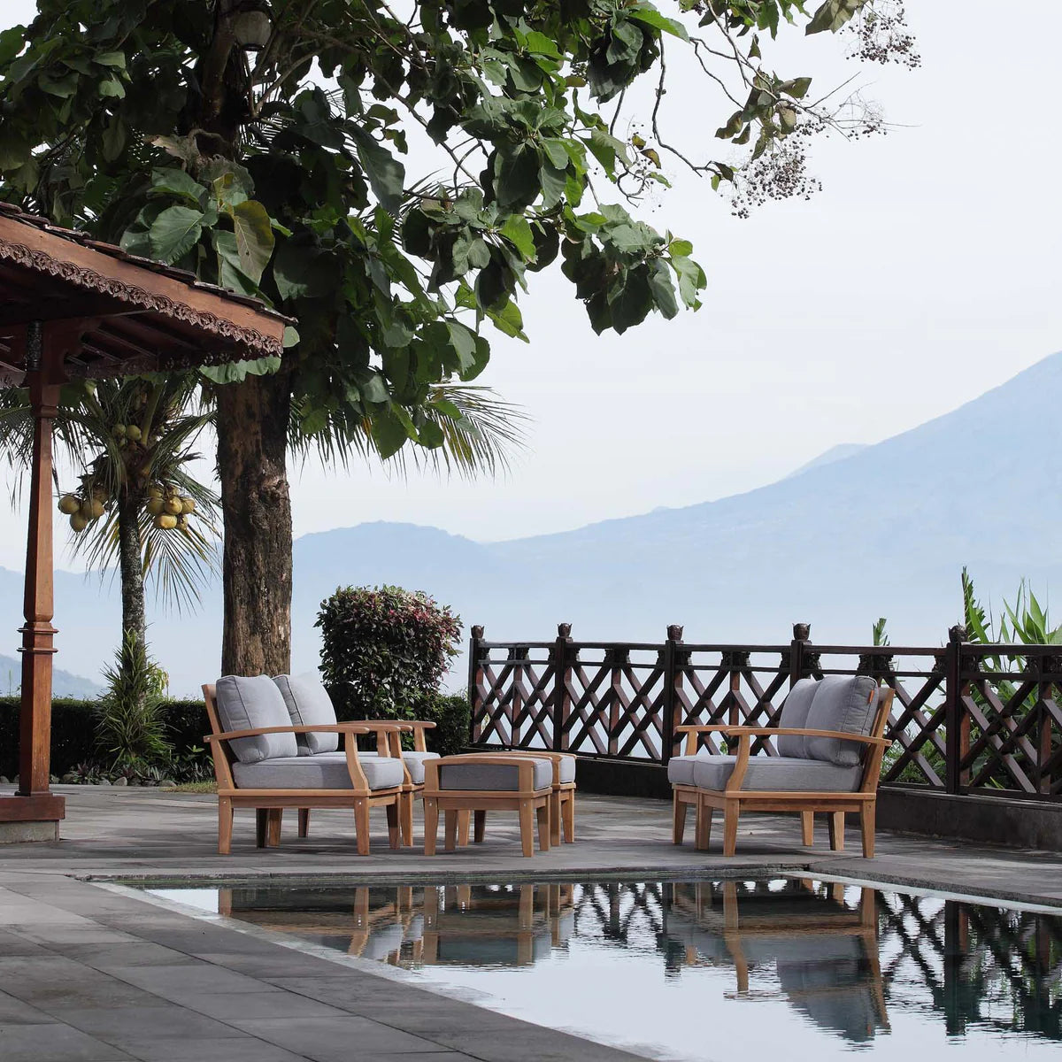 Transform your patio into a luxurious retreat with the Marina 6-Piece Outdoor Patio Teak Set in Natural Gray — a perfect combination of comfort, durability, and contemporary elegance for your outdoor living space.