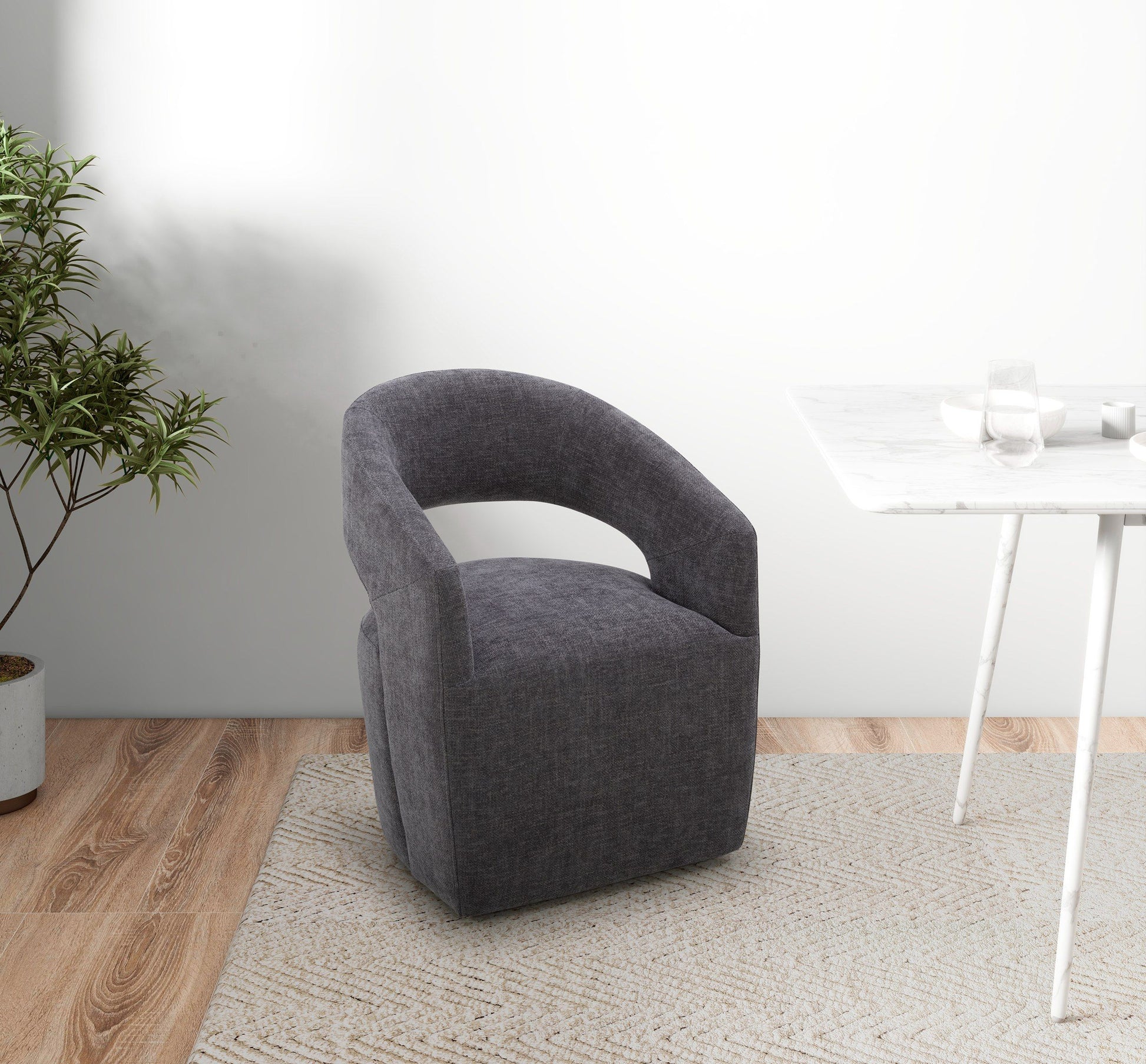 - Sleek Design: Upholstered in rich dark grey fabric, the Angie accent chair features clean lines and a modern silhouette that effortlessly complements a variety of dΓ©cor styles, from contemporary to industrial.