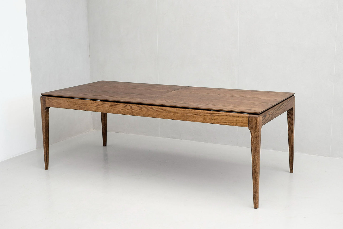 Crafted from high-quality brown oak, the table showcases a rich finish that highlights the natural grain of the wood, adding warmth and character to your space. Its extendable feature allows you to effortlessly accommodate additional guests, making it ideal for both intimate dinners and lively gatherings.