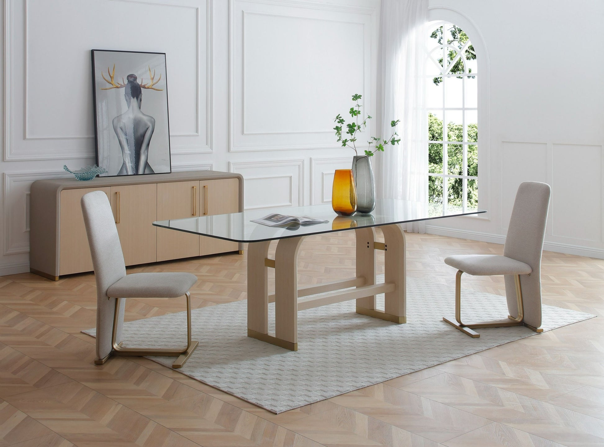 Elevate your dining space with the Modrest Florence Modern Beige Shagreen & Gold Buffet. This elegant storage cabinet combines contemporary luxury with timeless design. Wrapped in sophisticated beige shagreen texture and accented with gleaming gold stainless steel, it offers both style and functionality. Four spacious cabinet doors conceal ample storage for dinnerware, linens, or entertaining essentials. Ideal for modern dining rooms or upscale living spaces.