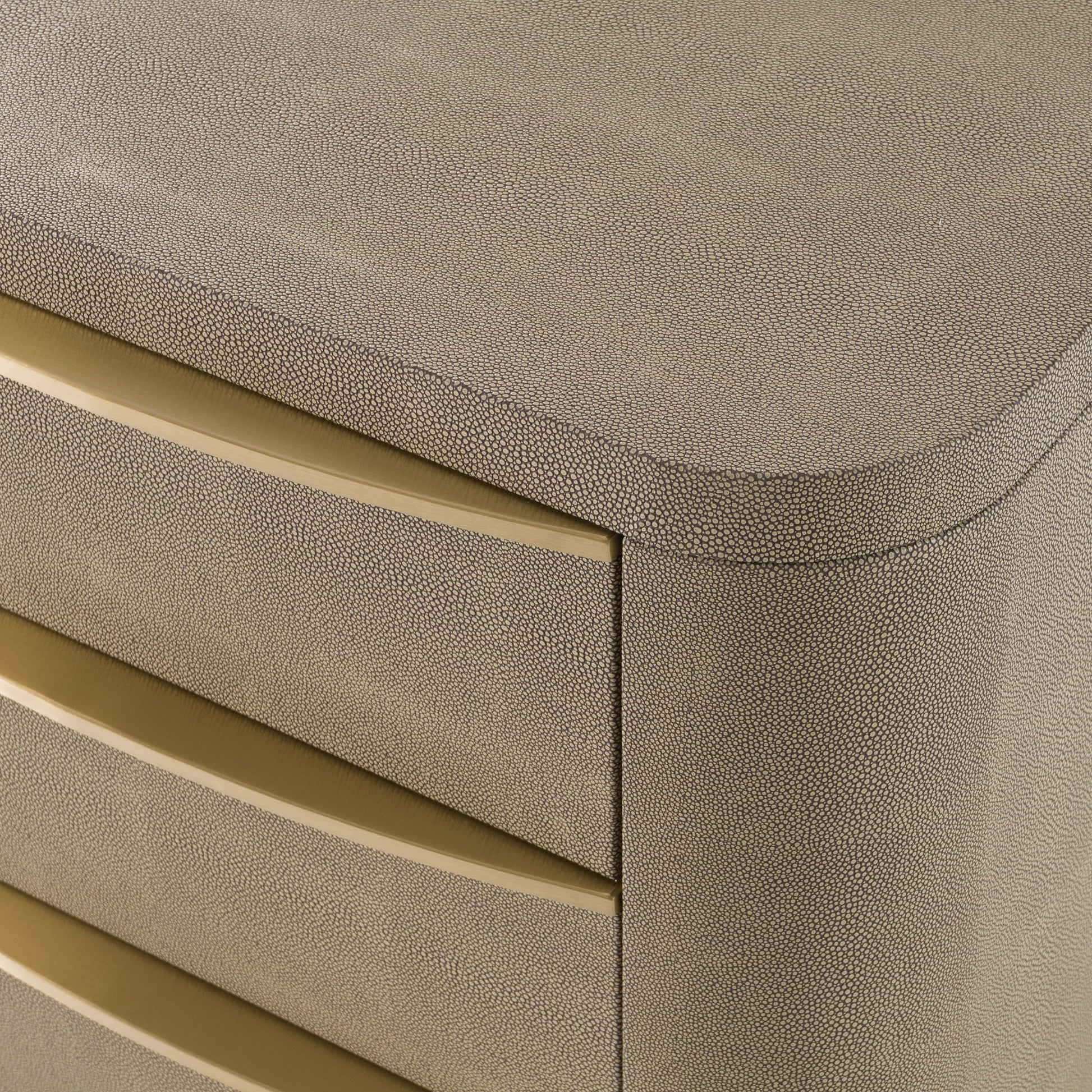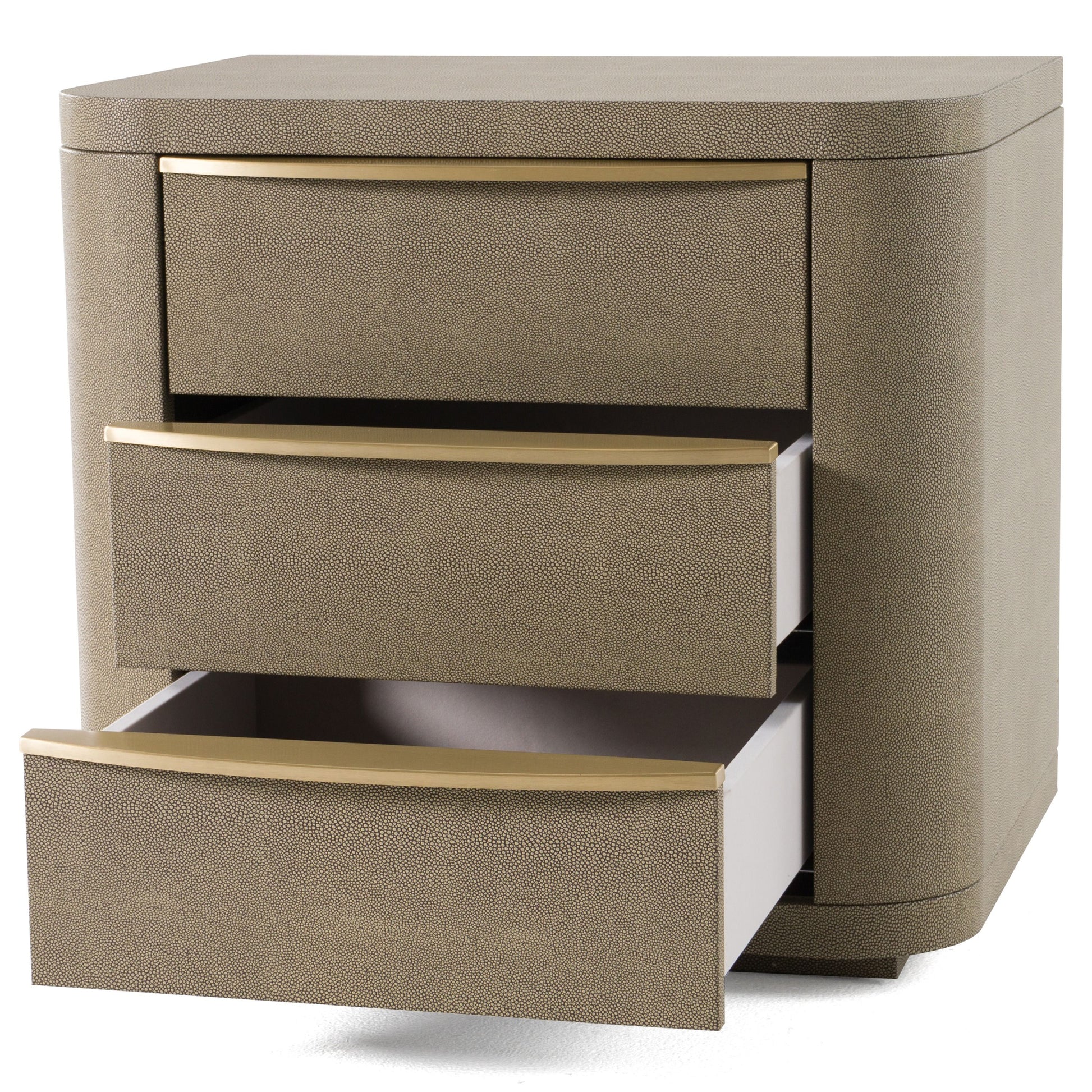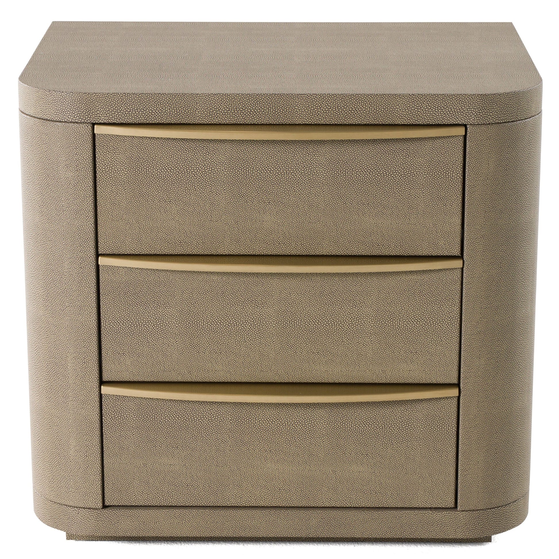 Lois Nightstand β Modern Beige Shagreen Finish with Brass Accents