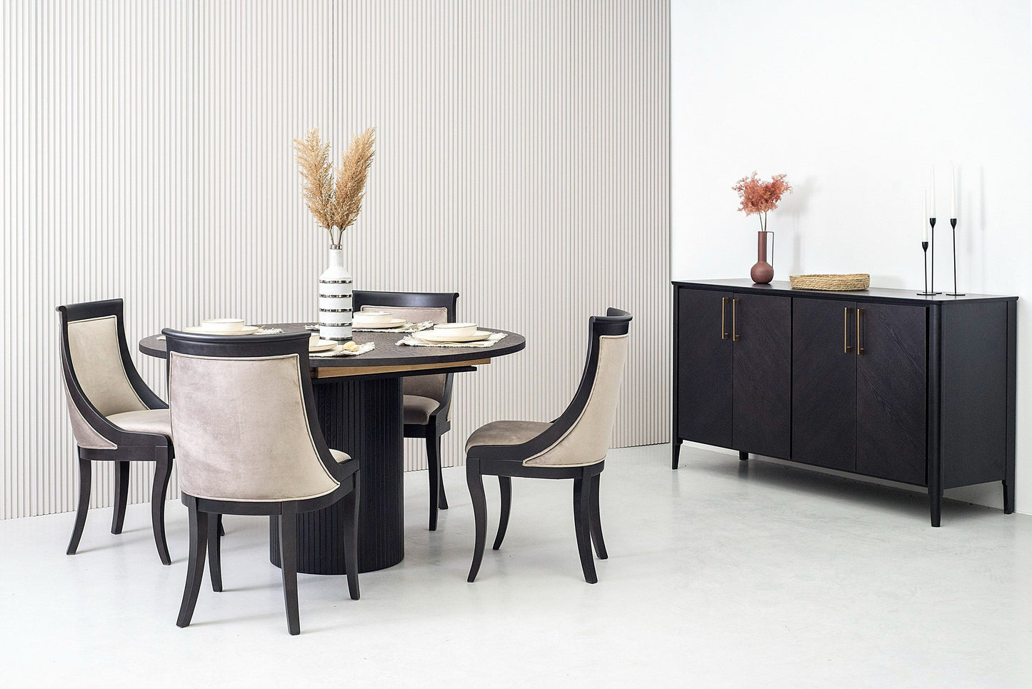 The Modrest Miami Dining Table is a sophisticated addition to any contemporary dining space, expertly combining style and functionality. Crafted from durable black oak, this round table features a sleek finish that enhances its modern aesthetic.