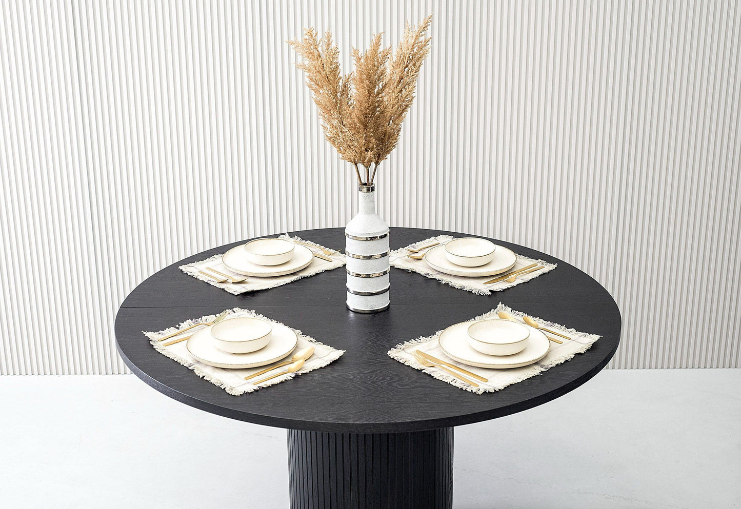 Modrest Miami Round Dining Table – Modern Black Oak with Extension for Stylish Dining