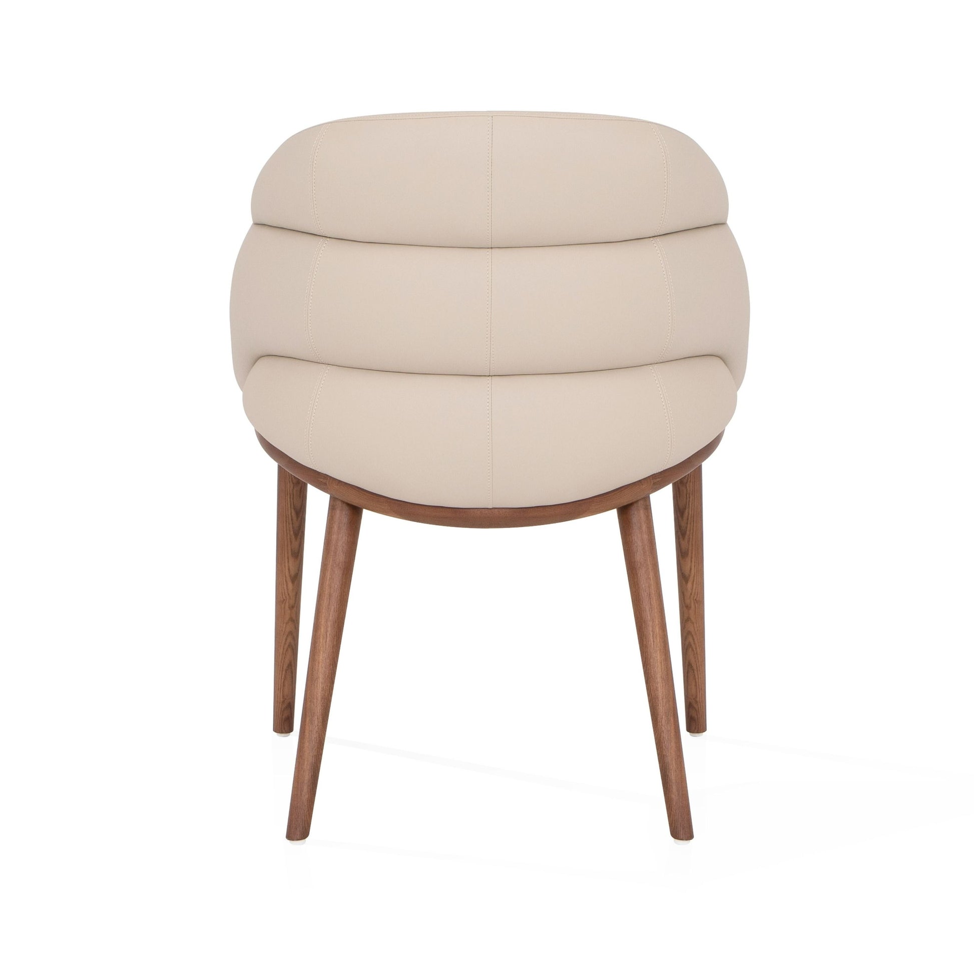 Modrest Michael Mid-Century Modern Beige Vegan Leather + Walnut Dining Chair - Comfortable and Elegant Seating for a Contemporary Dining Room