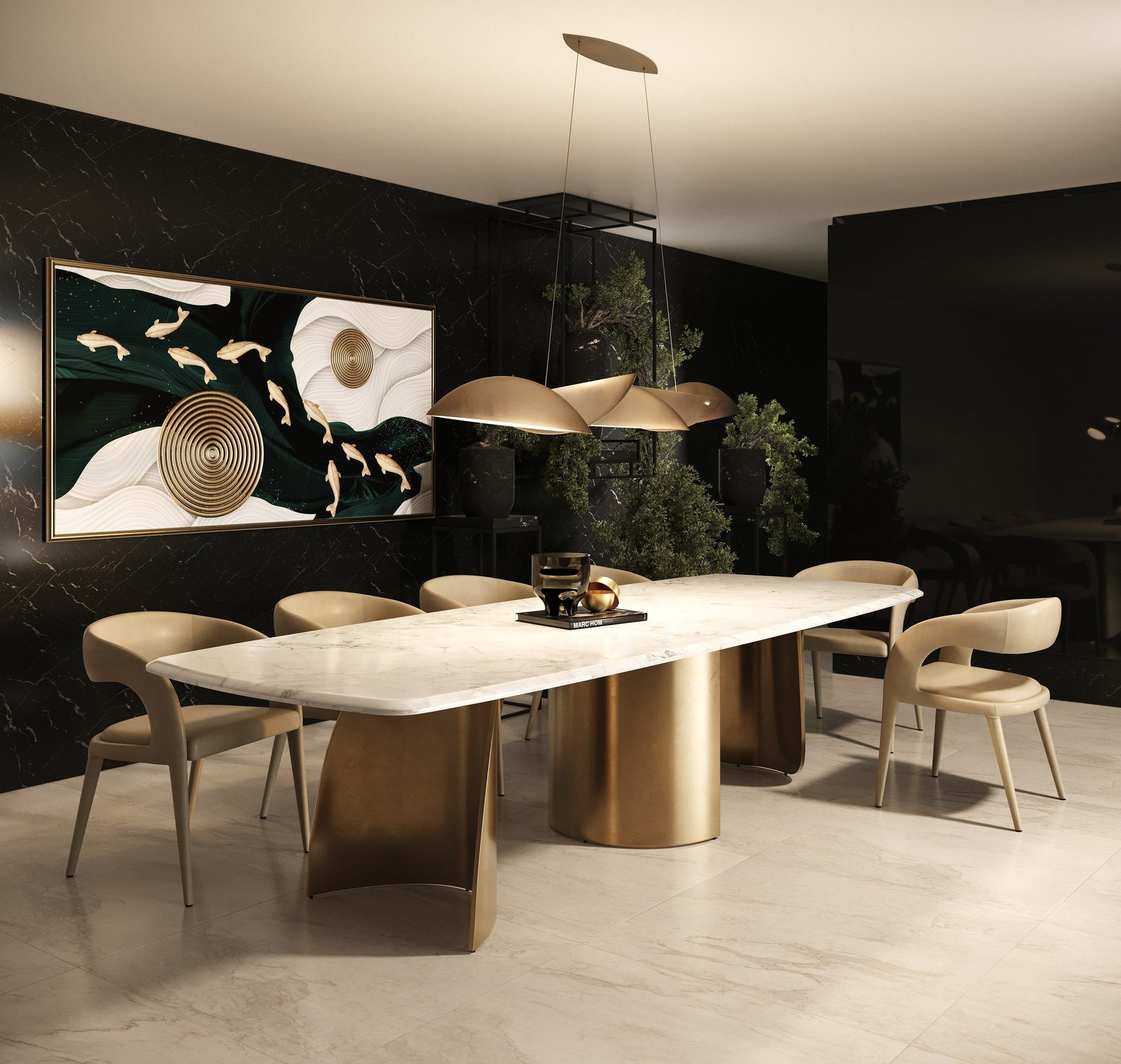Modrest Reynold - Glam Faux Marble + Gold Stainless Steel Dining Table | Luxe Elegance for Modern Dining