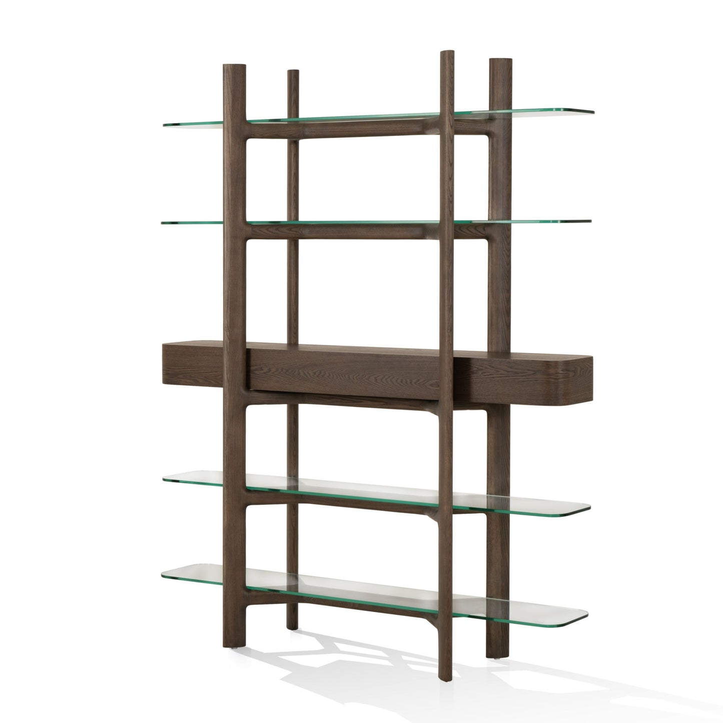 Modrest Rinaldi Mid-Century Modern Grey Ash + Glass Bookshelf - Elegant and Functional Storage Solution for a Contemporary Living Room or Office