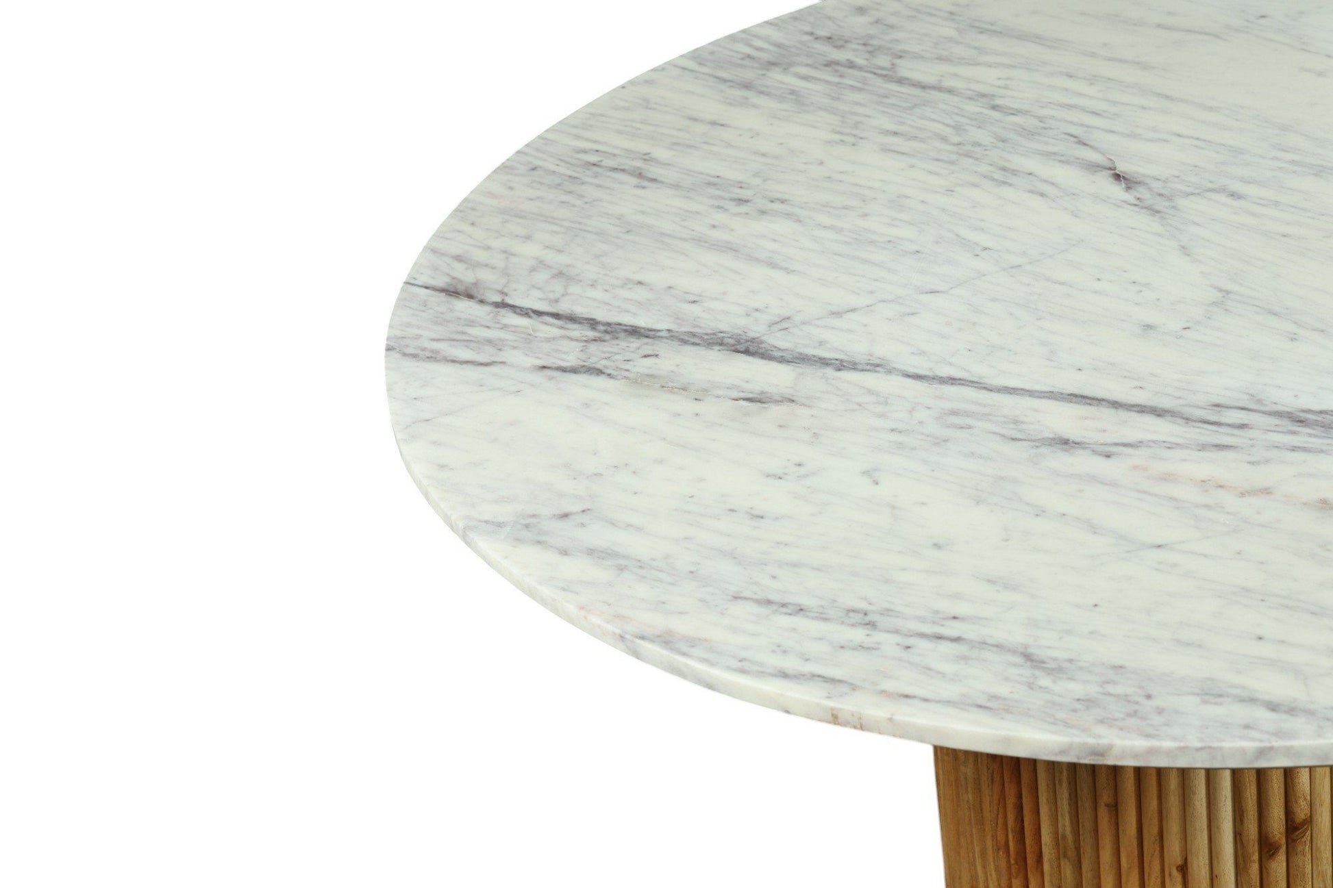 Modrest Shirley - Modern White Marble + Natural Acacia Round Dining Table β Sophisticated Design for a Chic Dining Experience