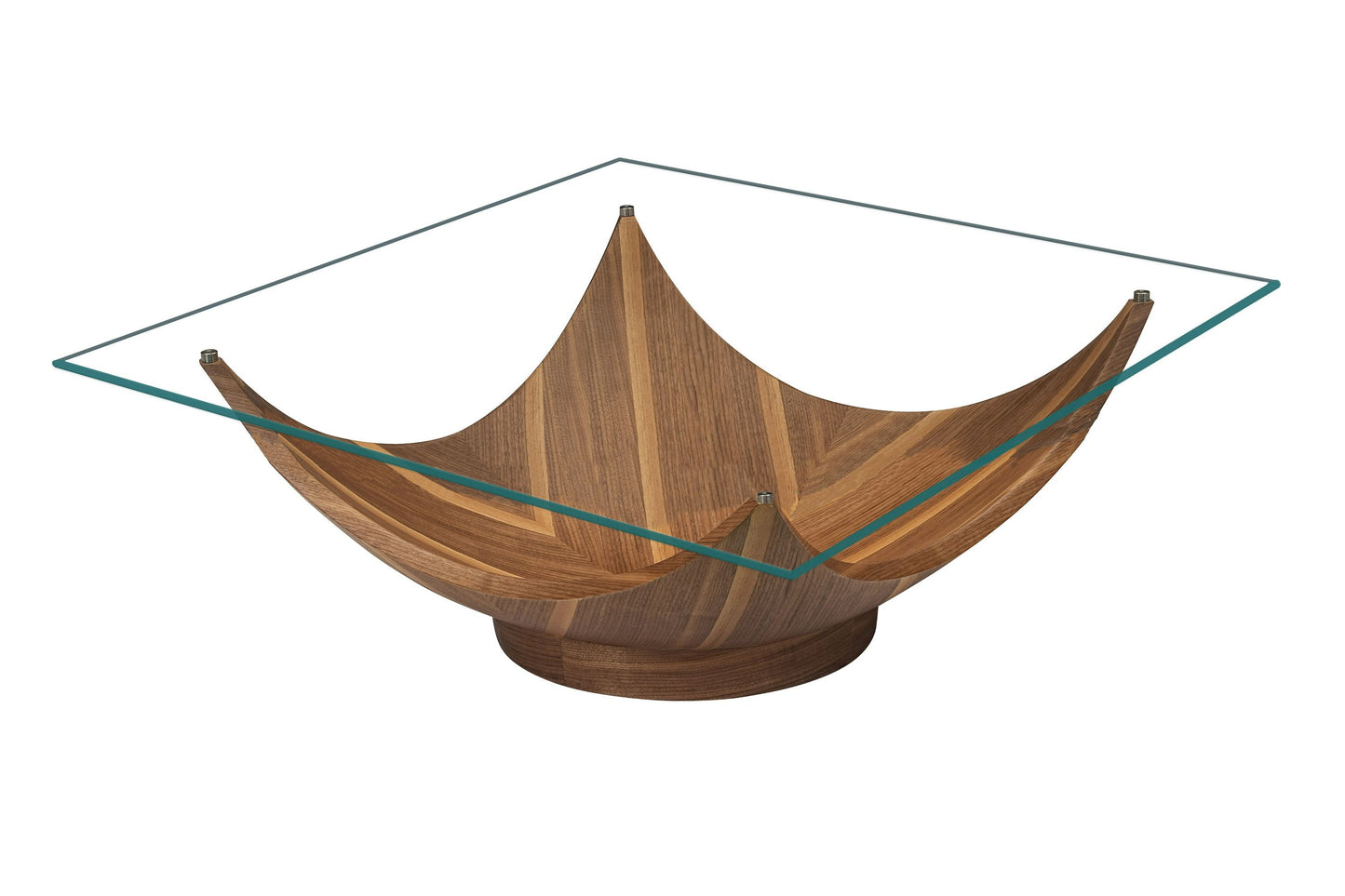 Modrest Sunrise - Contemporary Glass and Walnut Square Coffee Table - Elegant Centerpiece for Modern Living Rooms