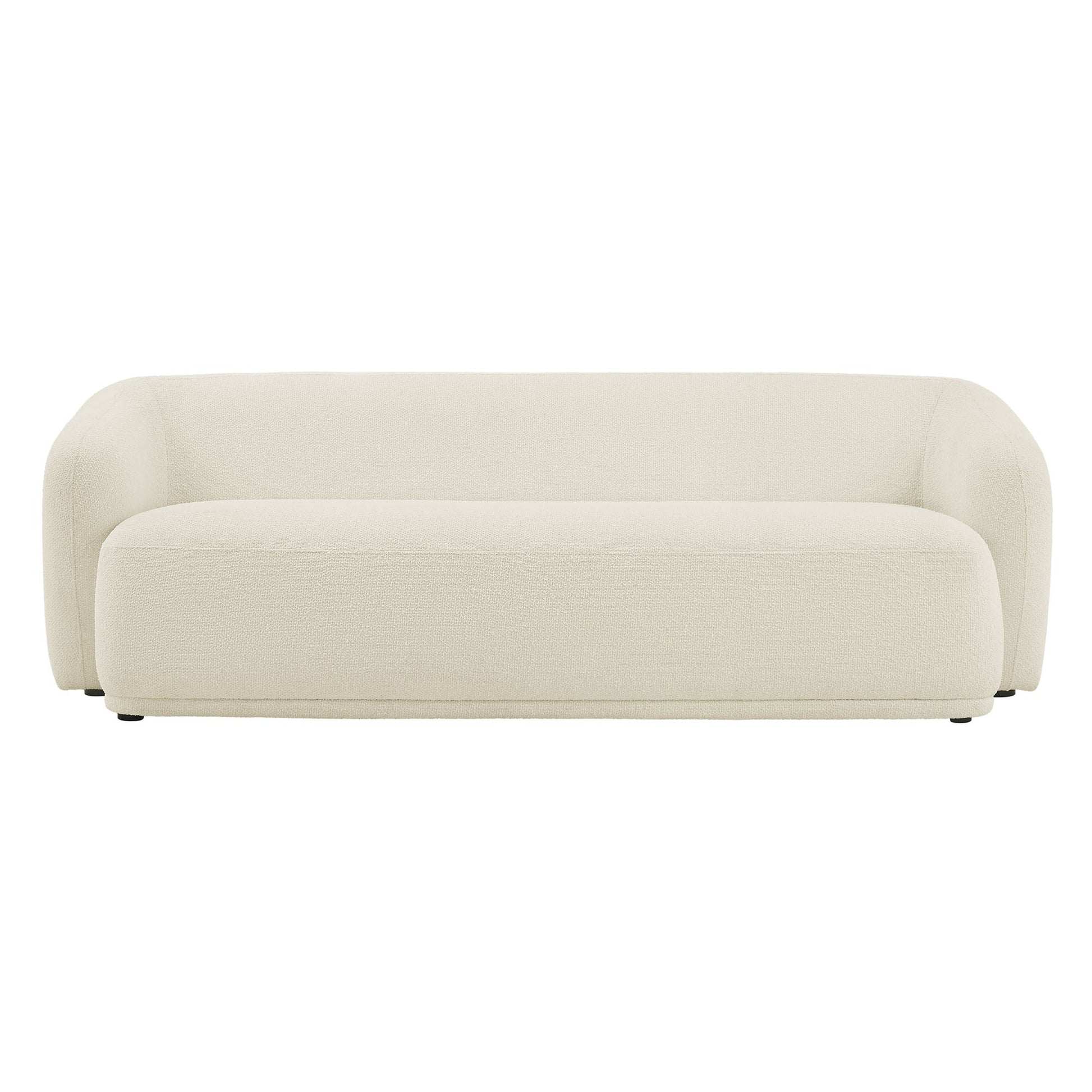 Β The Monica Sofa is an 88βinch upholstered seating piece designed with a low, rounded silhouette suitable for modern interiors. Wrapped in bouclΓ© fabric, the sofa features an internal rubberwood frame and a spring pocket coil system that provides structured seating support. The sofa seats 3β4 and arrives fully assembled. Weight capacity is 600 lbs.