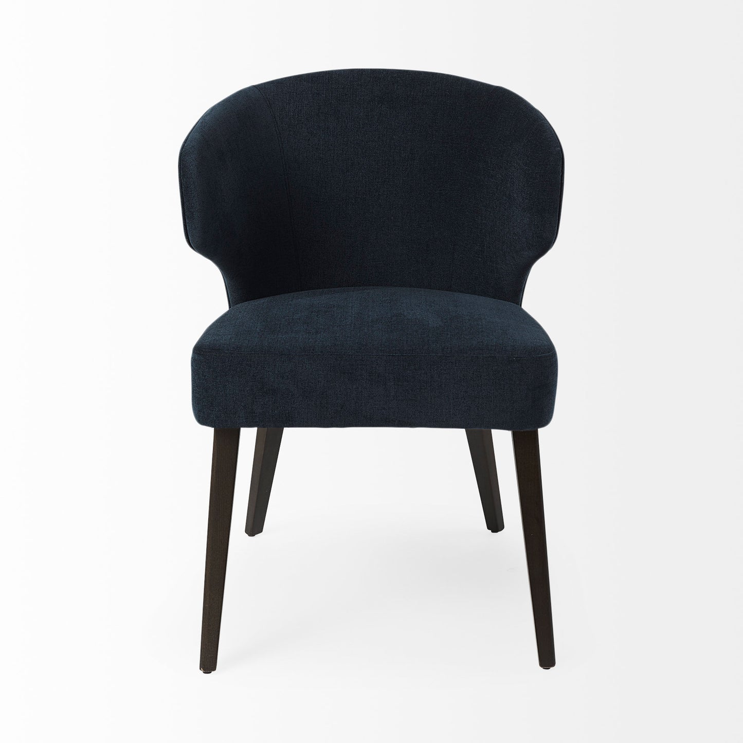 Niles Navy Fabric Seat with Dark Brown Wooden Legs Wingback Dining Chair - Stylish and Comfortable Seating