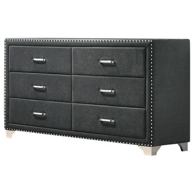 Transform your space with the refined style and practicality of the Melody 6-Drawer Upholstered Dresser.