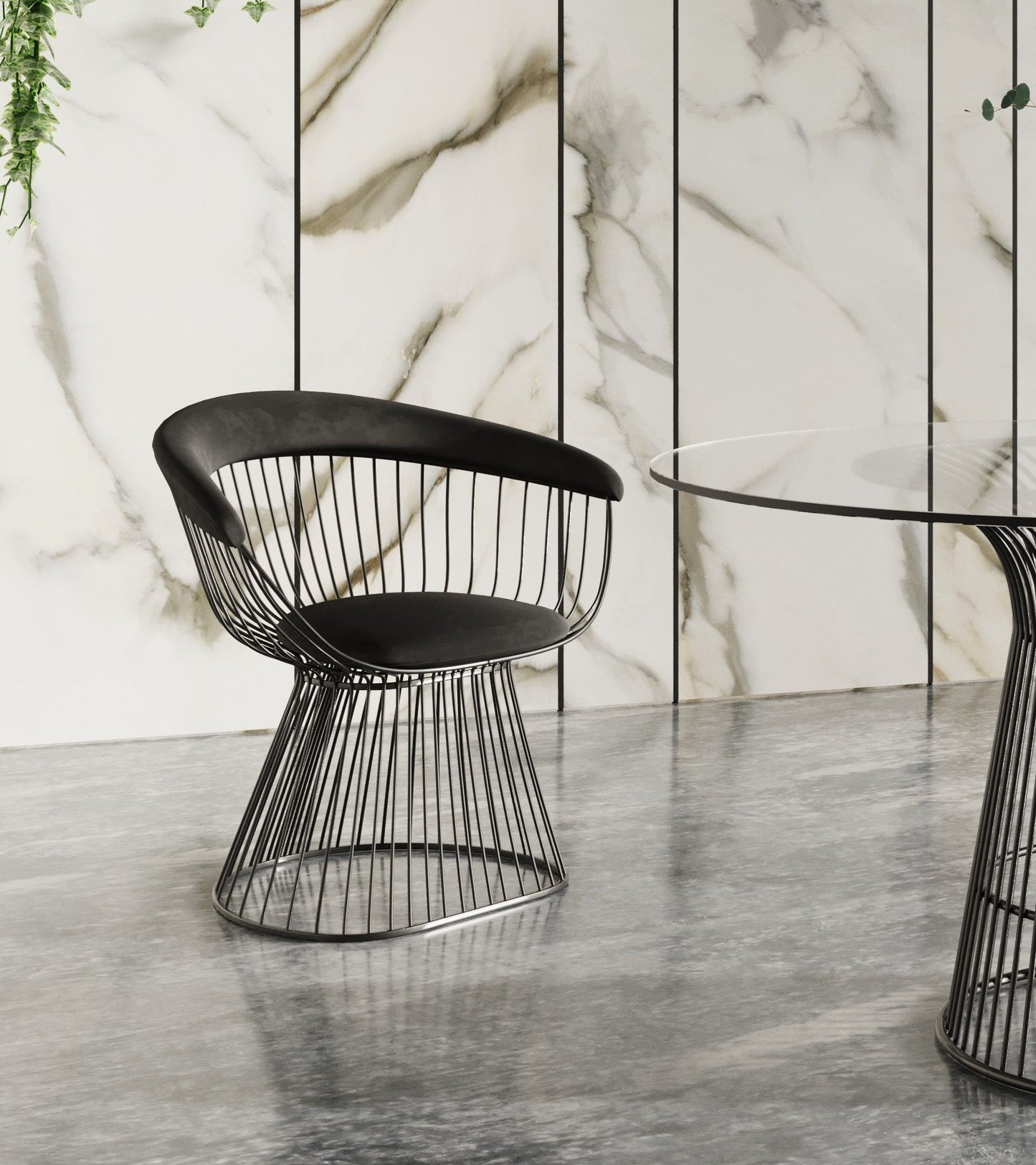 Elevate your dining area with the Modrest Chandler Modern Black Velvet & Black Stainless Steel Dining Chair. This stylish chair combines luxurious materials with a contemporary design, making it an ideal addition to any modern dining space.
