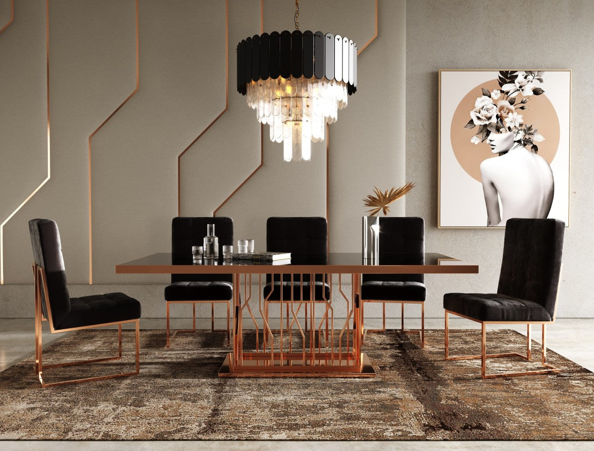 Modrest Marston Modern Black Glass & Rosegold Dining Table
