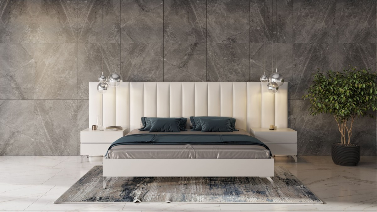 Nova Domus Angela Italian Modern White Eco Leather Bed Nightstands and Wings