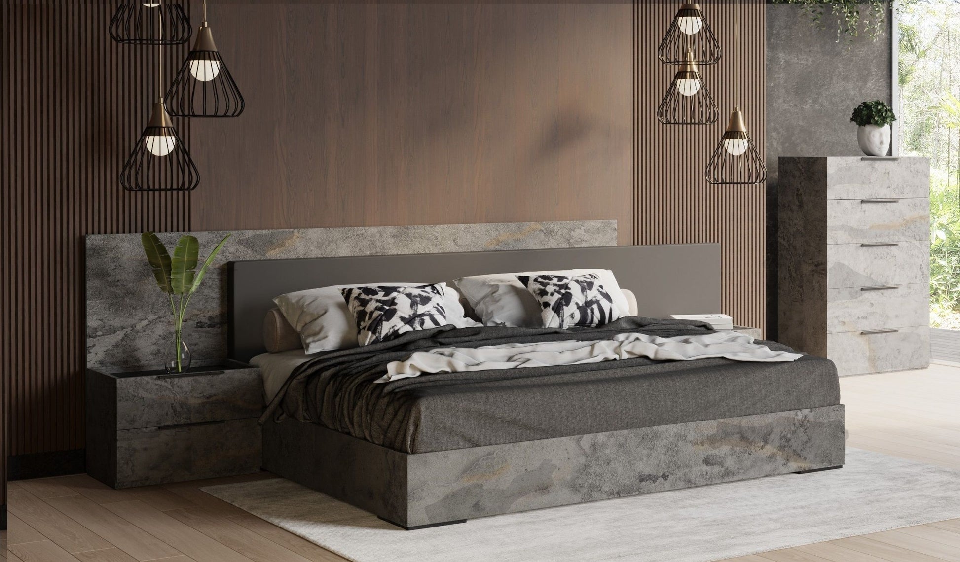 Nova Domus Ferrara - Modern Volcano Oxide Grey Bed + Nightstands
