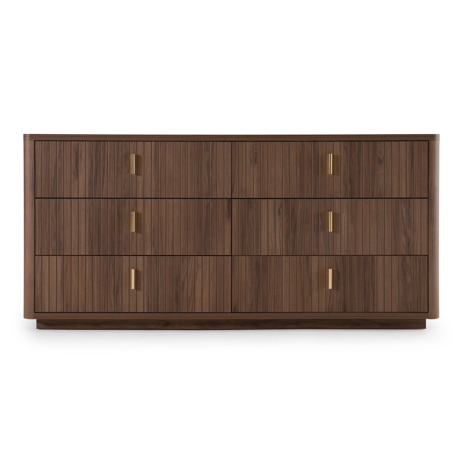 Roma Modern Walnut and Gold SixβDrawer Dresser