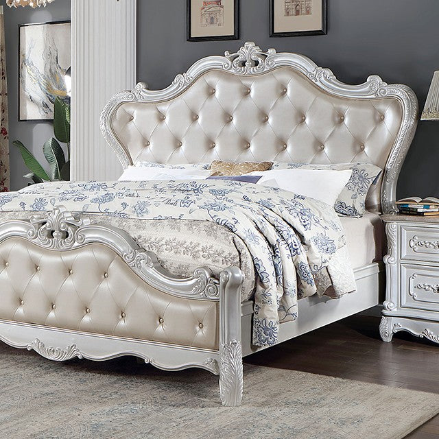 Rosalind Traditional Leatherette Solid Wood Button Tufted Bed