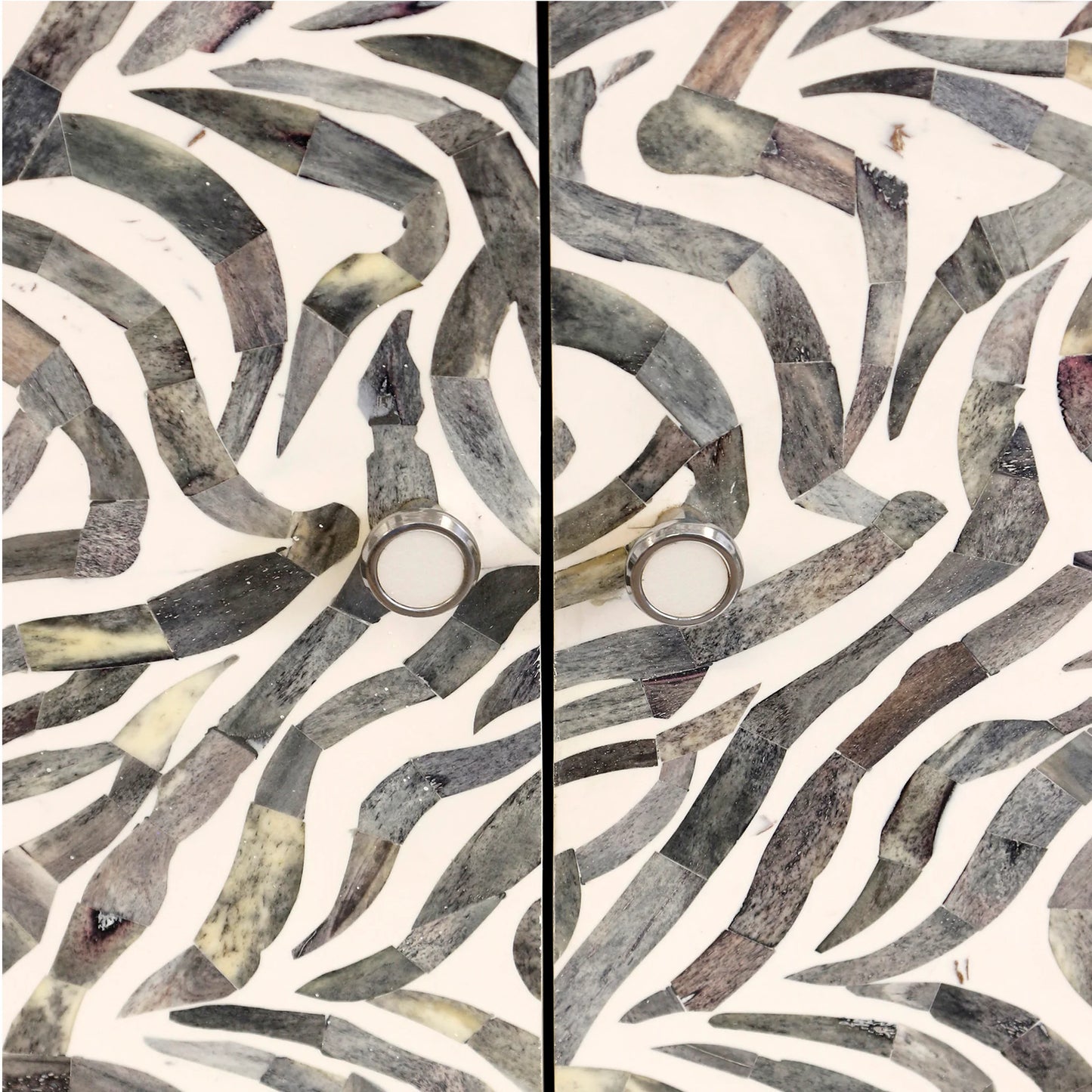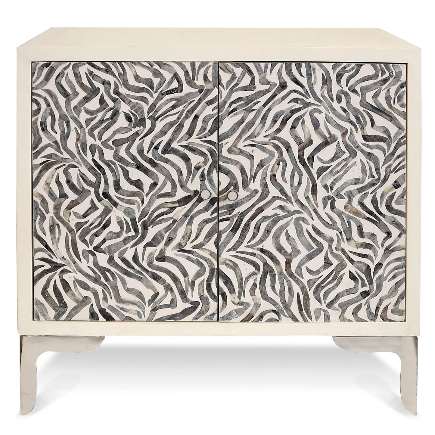 Serpentine Cabinet - Off White and Bone Grey Mosaic with Double Doors | Elegant Storage with Distinctive Design