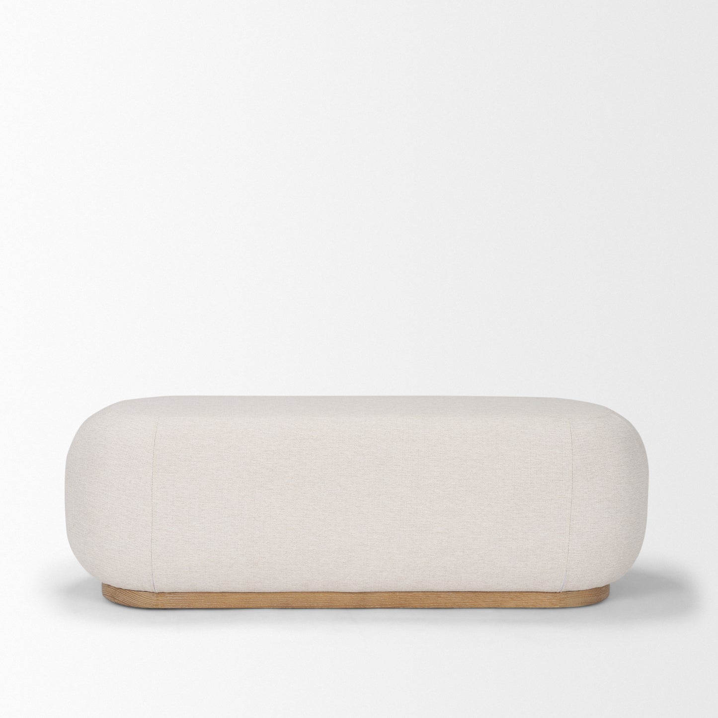 Siren Cream Fabric Oblong Bench with Light Brown Wood - Elegant and Versatile Seating Option