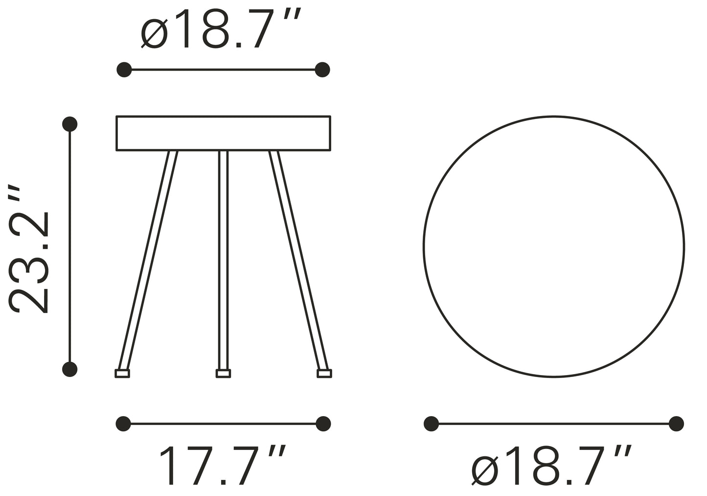 18.7" W x 18.7" D x 23.2" H