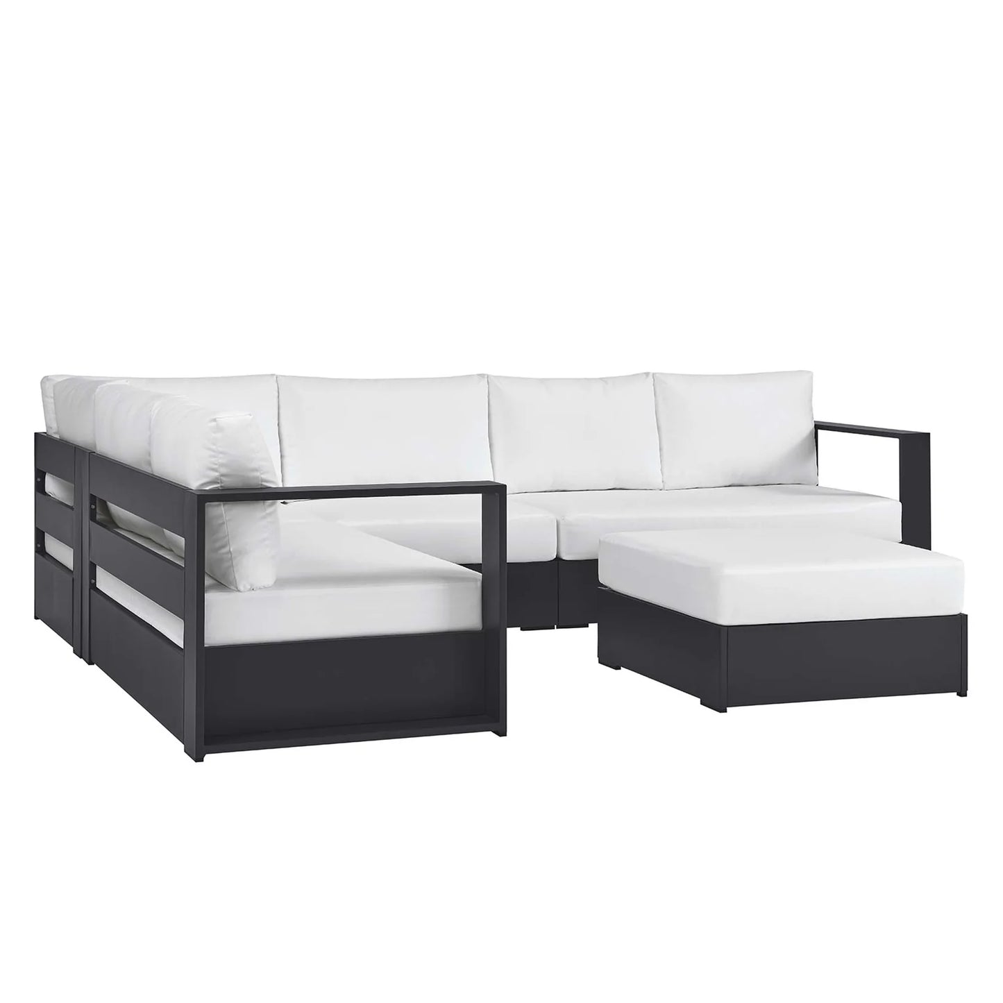 The Tahoe 5-Piece Outdoor Patio Powder-Coated Aluminum Sectional Sofa Set is designed to offer both durability and style for your outdoor living space. Crafted with high-quality materials and a sleek, modern design, this sectional set provides the perfect combination of comfort and sophistication for your patio, balcony, or garden.