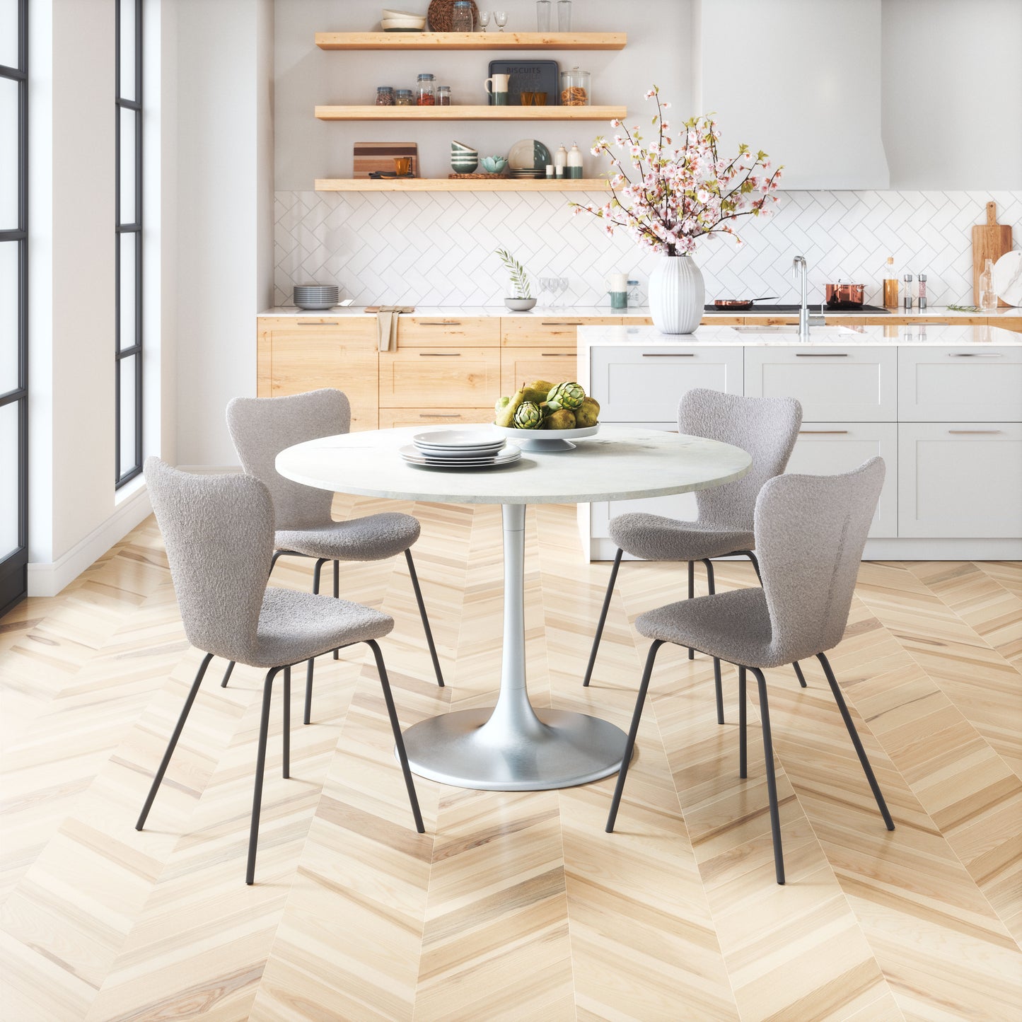 The soft light gray color offers a versatile and contemporary touch, seamlessly integrating with various decor styles, from minimalist to traditional. The ergonomic design ensures comfortable seating for long meals, making these chairs ideal for family dinners and entertaining guests.