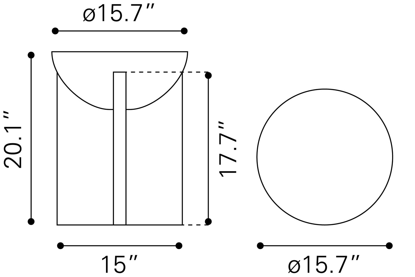 15.7" W x 15.7" D x 20.1" H