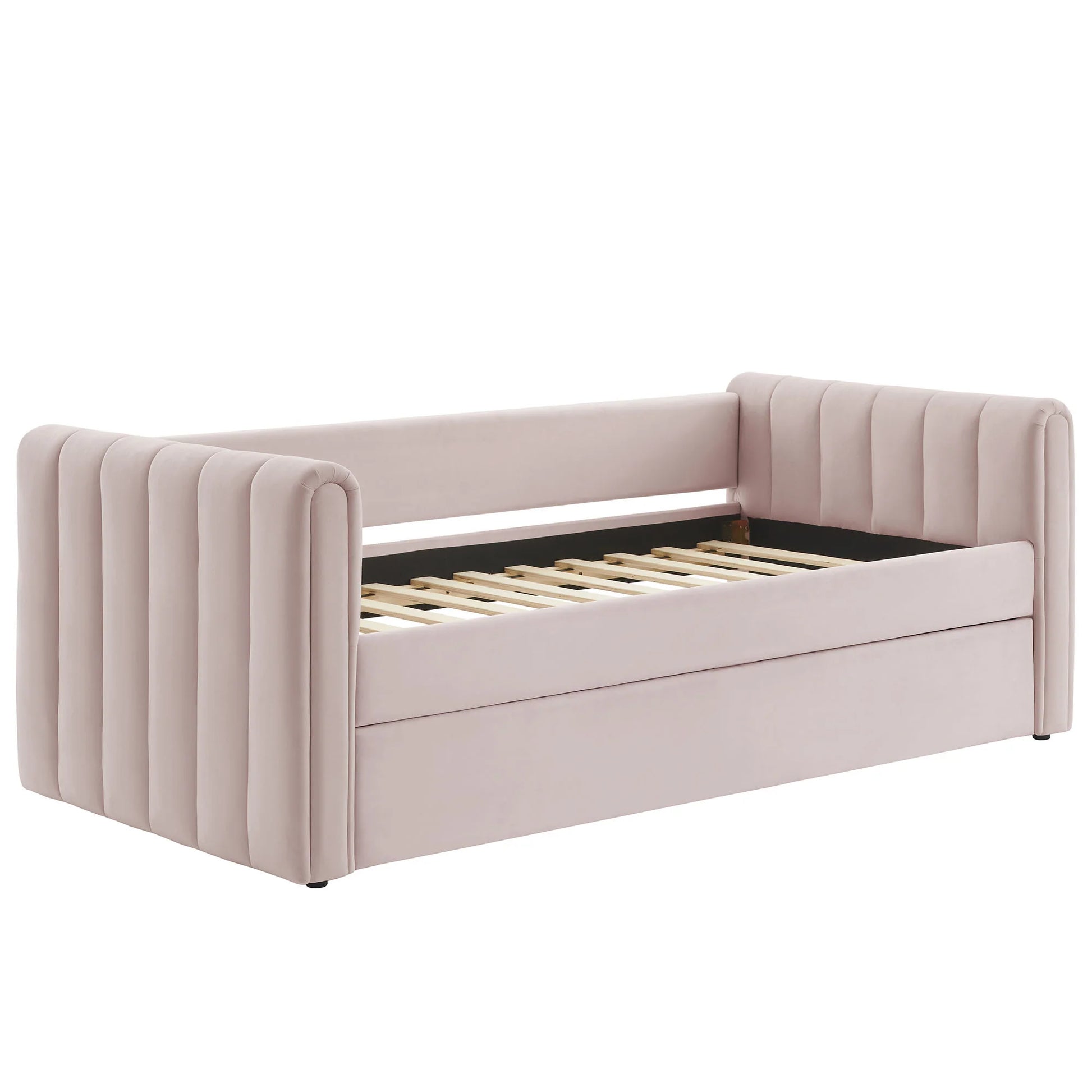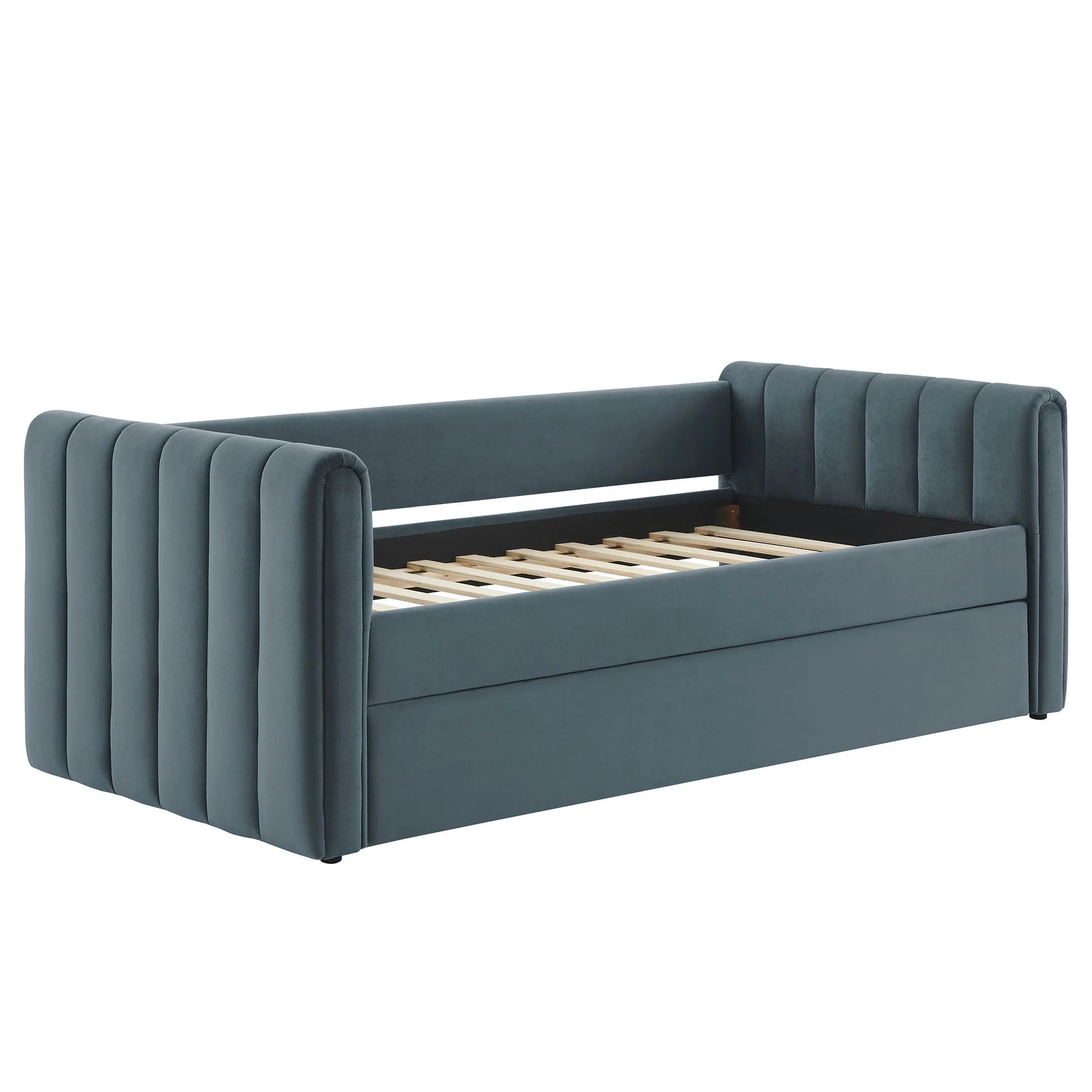 Veyla Channel Tufted Performance Velvet Twin Daybed with Trundle β Durable Sleeper Sofa
