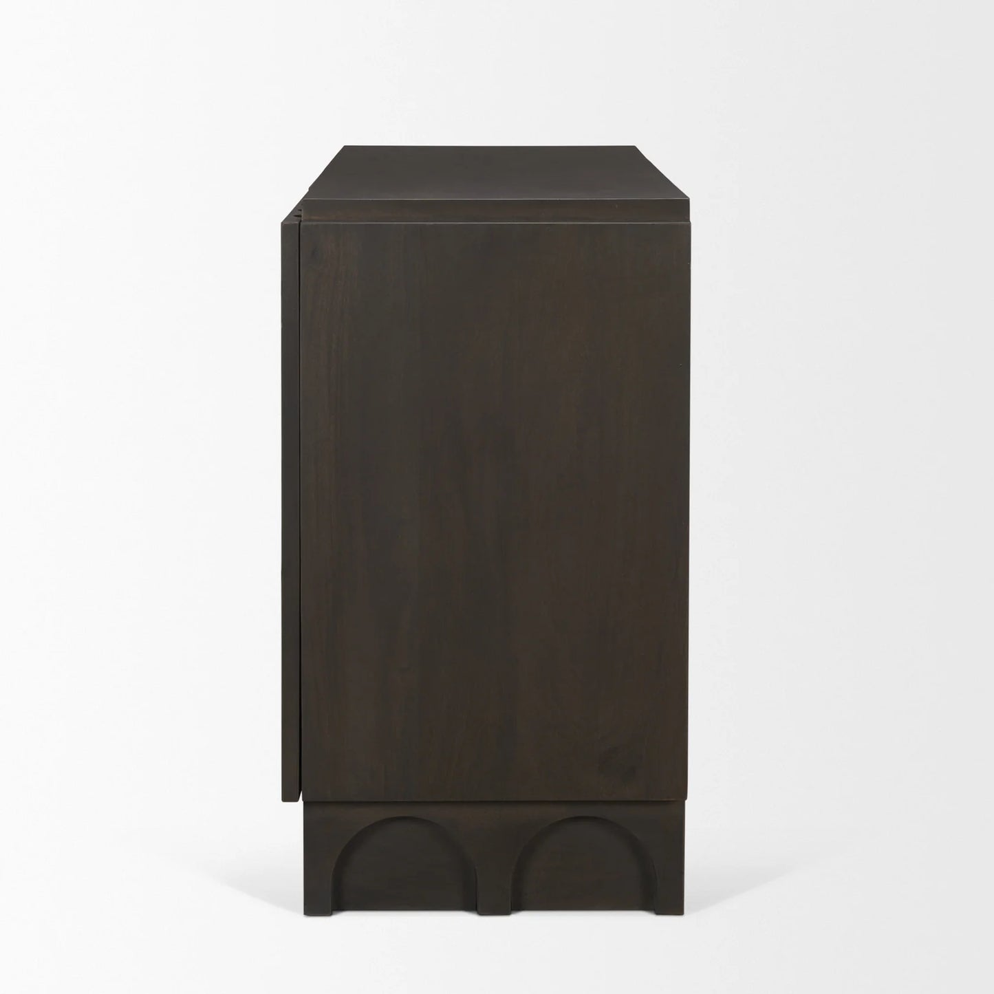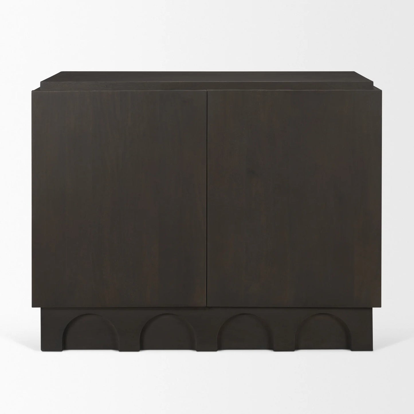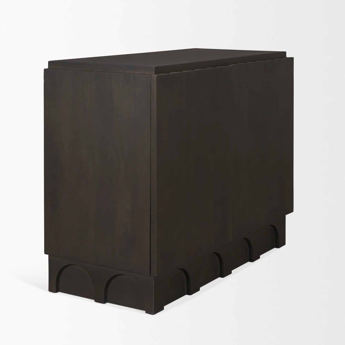 Wagner Dark Brown Wood Accent Cabinet with Elegant Arched Design & Scalloped Detailing for Style
